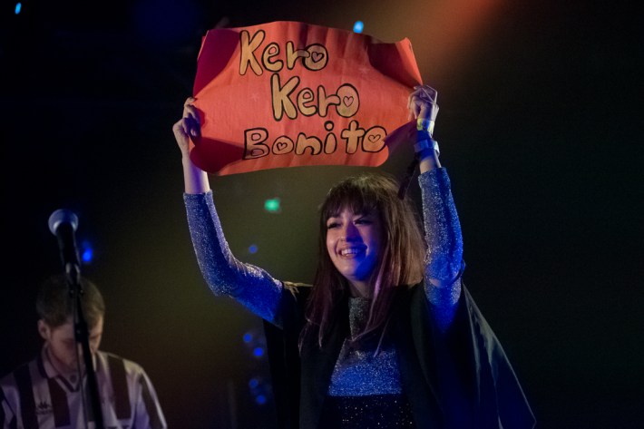 I started off the night with Kero Kero Bonito at Austin's Hype Hotel. Intro Bonito is one of my favorite albums from last year, so I was super excited to see them in person. The venue itself is cavernous, an old warehouse whose only purpose seems to be to support the influx of people who come into Austin for SXSW. Everyone was still filing in because they were the first ones to go on, but I was there early and standing in the front row anxiously waiting for them to go on. Sarah Bonito is the star of their live show, a charismatic and bubbly figurehead who knows how to work a crowd. One of the most memorable things about the set was how they work with props -- during a fantastic new song about graduating from college, she put on a cap and gown and sang about how getting a degree doesn't matter; for "Pocket Crocodile," she sang to a plush crocodile. It was the sort of star-making performance that you hope to see at SXSW, and I really don't think there was anyone in the room who wasn't a convert by the end of the set. For their first time playing in the U.S., it was their time to shine.