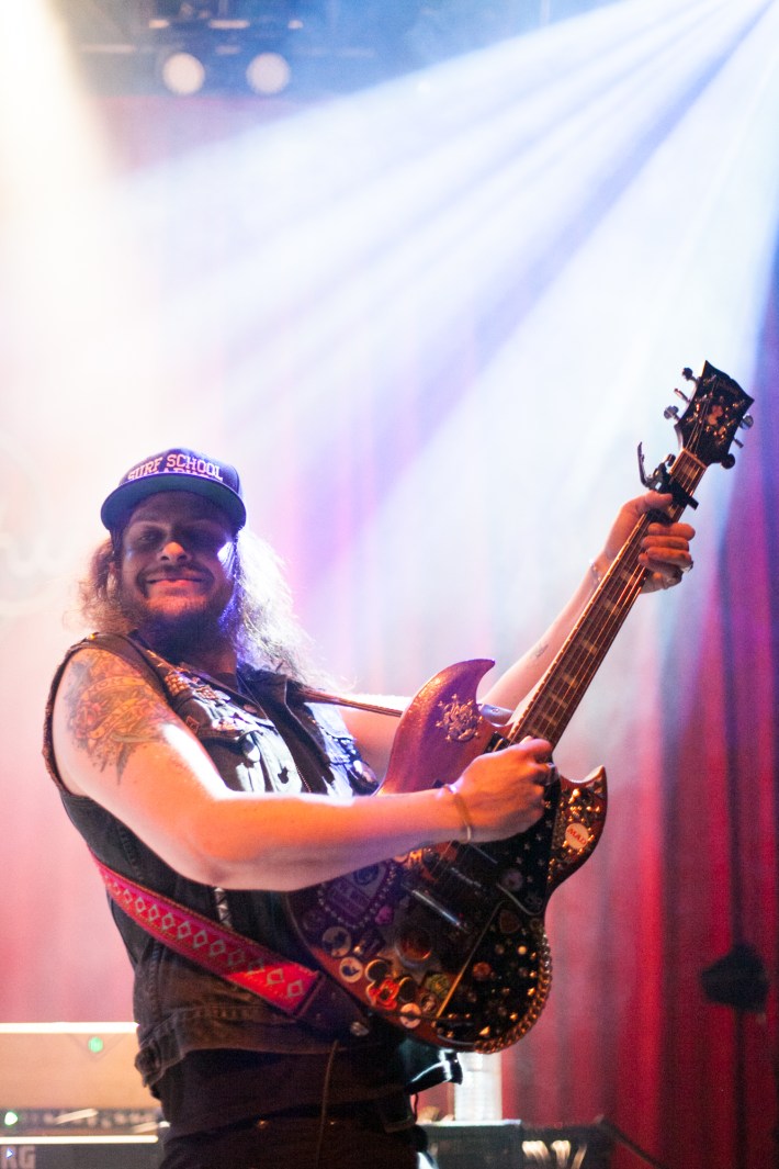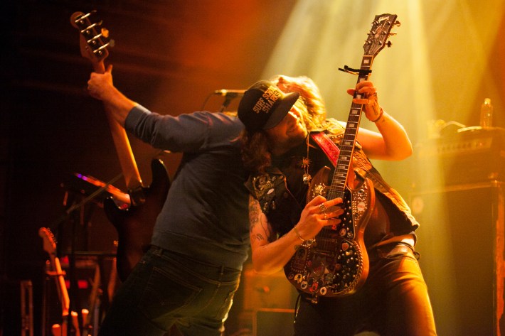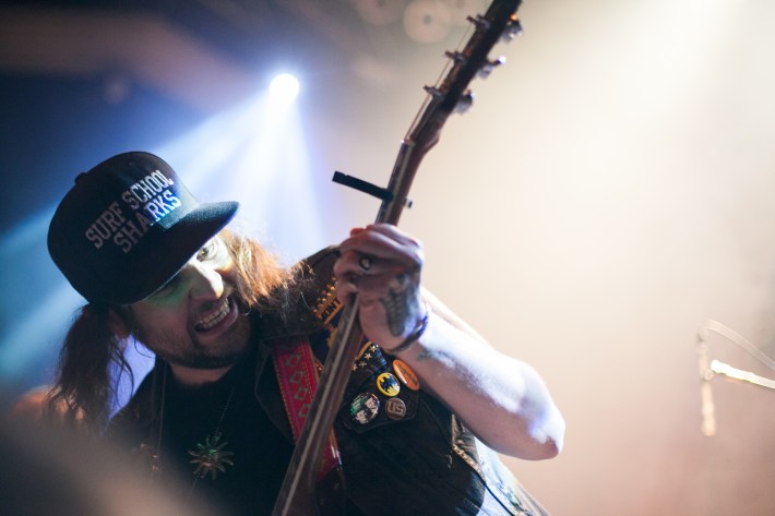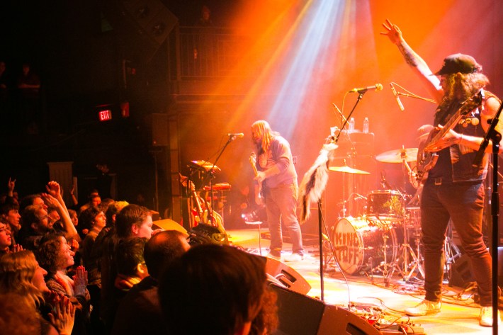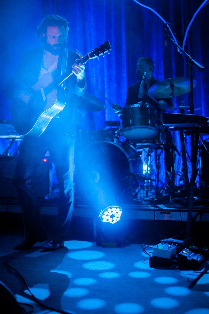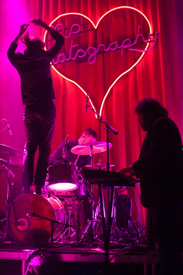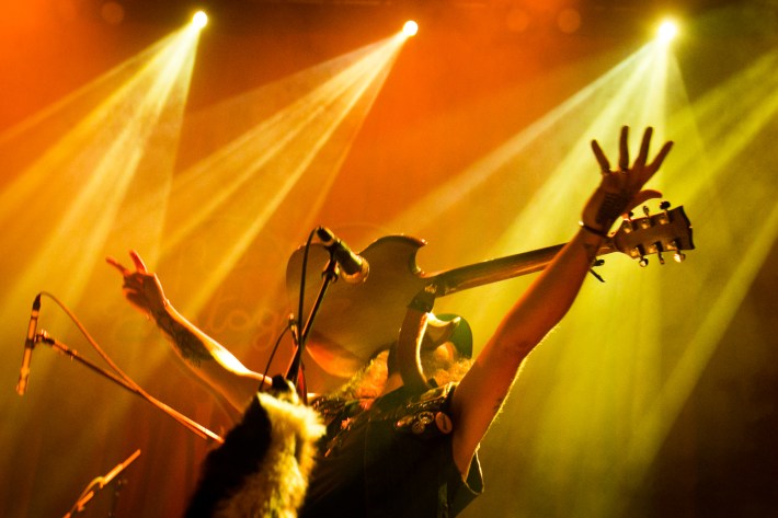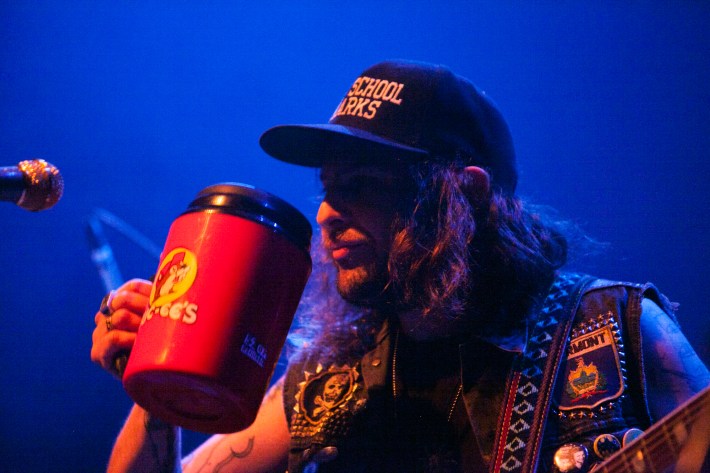 Father John Misty has been out on the road promoting his latest record, I Love You, Honeybear, for the past month and will continue to travel the country well into early summer. Photographer Tom Daly caught his set at Washington D.C.'s 9:30 Club, along with opener King Tuff, whose Black Moon Spell dropped last fall. Shrouded in an intense layer of fog, King Tuff's bassist gave a shout-out to D.C. for legalizing marijuana toward the end of their dynamic set. Father John Misty's big up to the District of Columbia was a tad more smarmy: "Thanks for coming out you razor sharp, jaded D.C. cynics." FJM said this after snagging a girl's cell-phone from the audience. She had been shooting a video, and FJM took the opportunity to record himself singing on stage in front of the neon "No Photography" sign. It was a pointed, sarcastic gesture, and the audience applauded loudly when the song was through. FJM assured the crowd that his encore was "meticulously curated for maximum pants moisture," and it included a cover of Leonard Cohen's "I'm Your Man." Scroll through Daly's photos of the performance above.