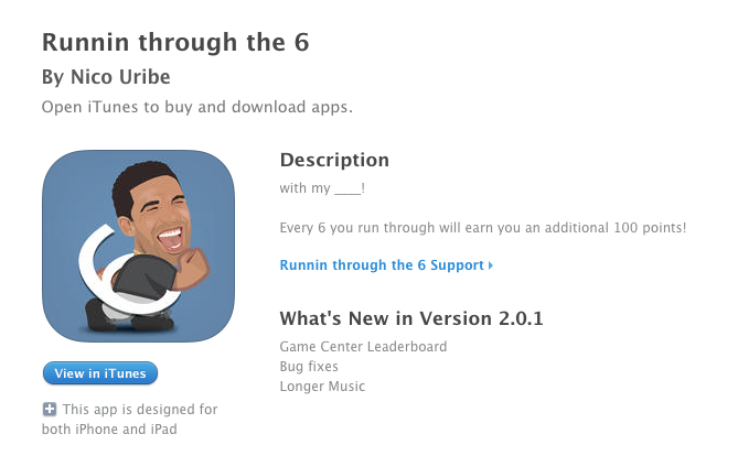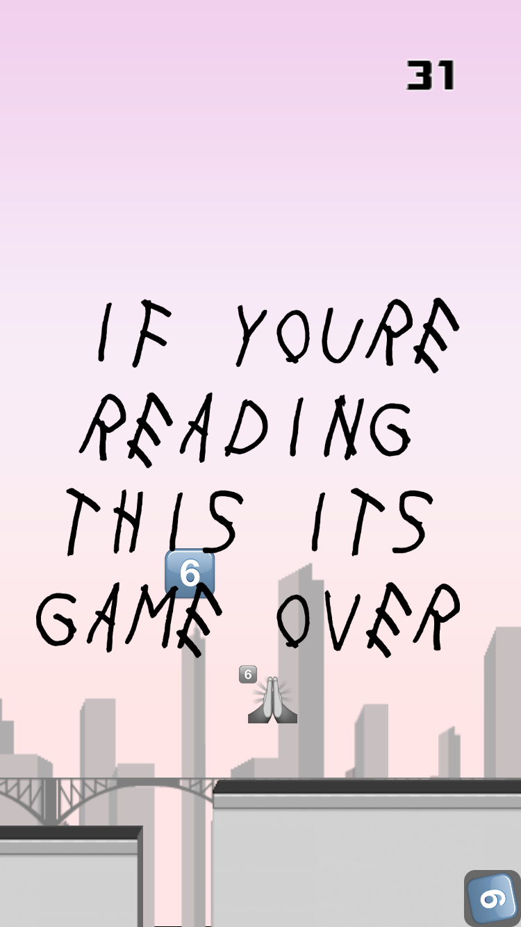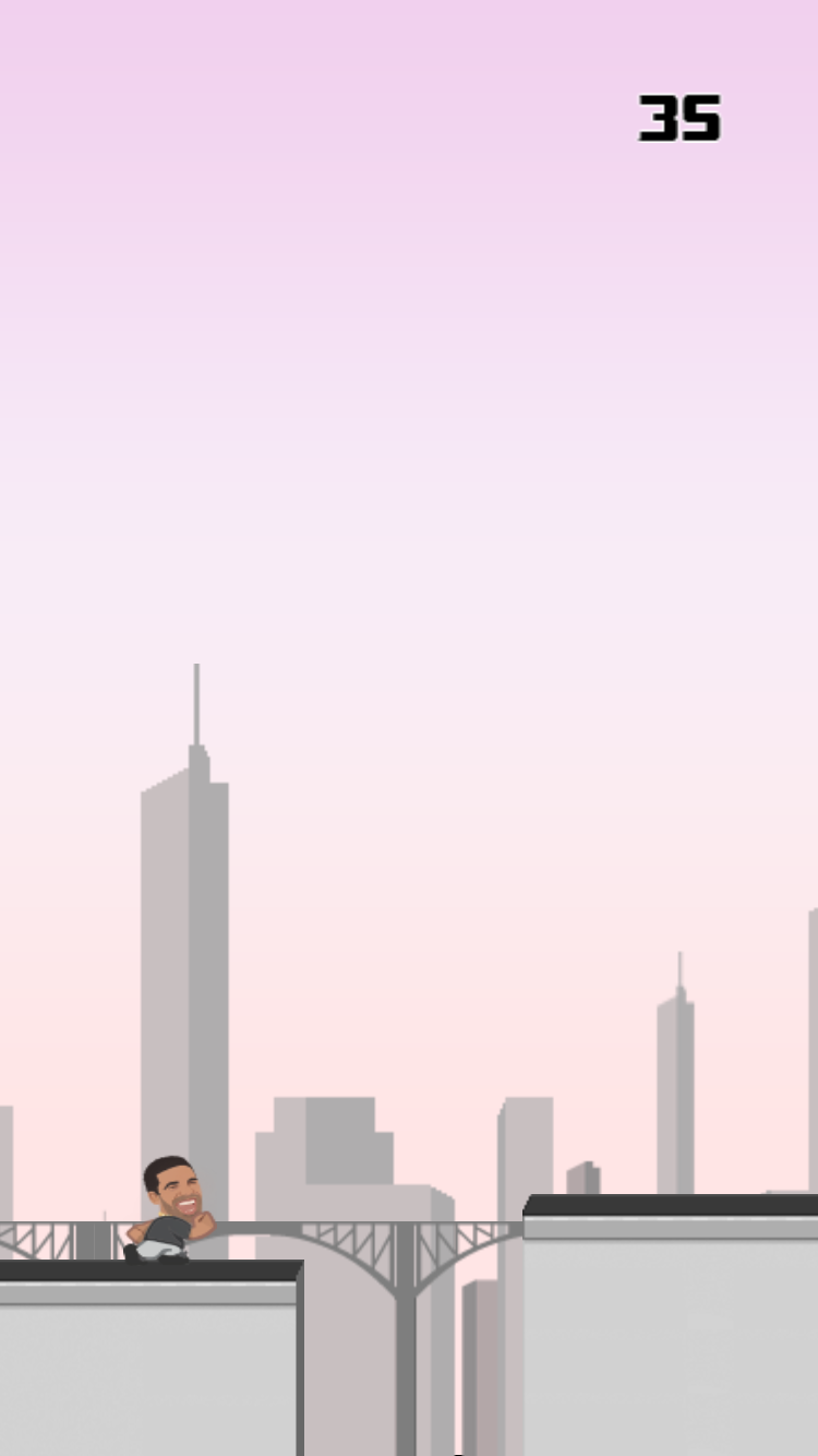 It's so popular, in fact, that the single line spawned its own iPhone game. Developed by Nico Uribe, the game lets you run through a background of tall buildings, presumably in Toronto, and jump over gaps.