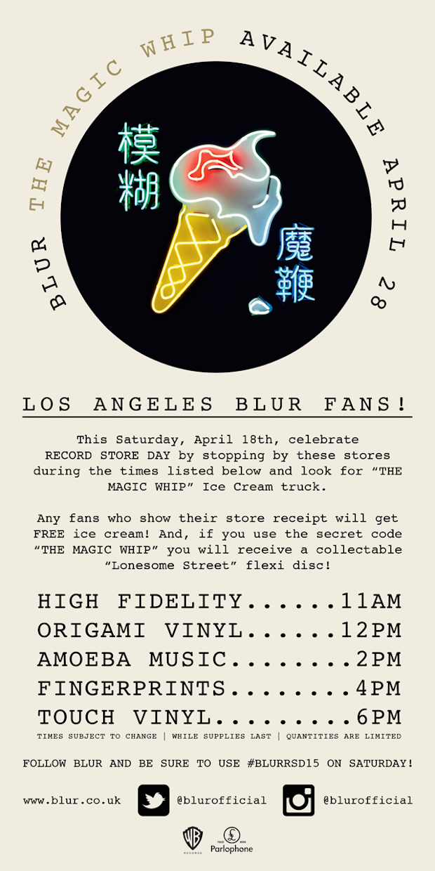 And for Record Store Day this year in Los Angeles, there will be a Magic Whip ice cream truck making the rounds. Anyone who shows their receipt from a record store will get free ice cream, and if you say a secret code you'll get a "Lonesome Street" flexidisc. Here are the details: