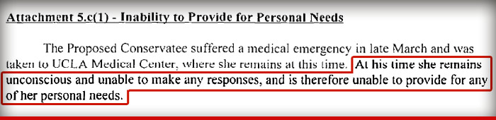 TMZ has responded by sharing a section of Morris' court document that reads, "At his [sic] time she remains unconscious and unable to make any responses, and is therefore unable to provide for any of her personal needs"...