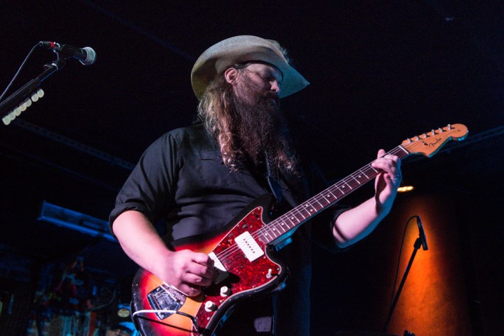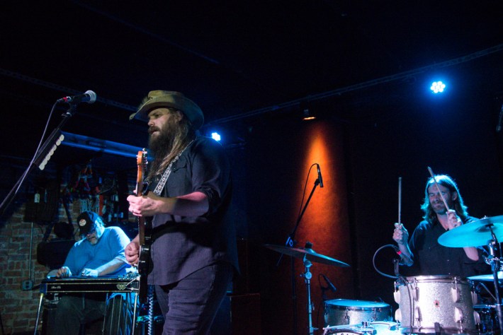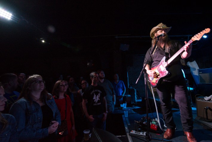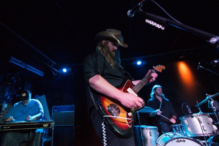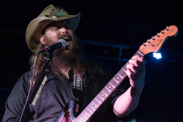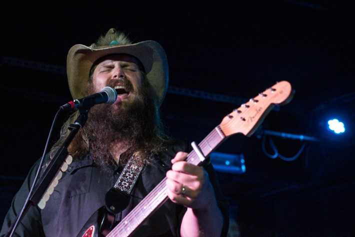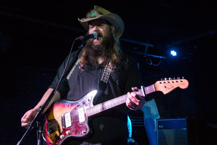 Chris Stapleton's excellent debut solo album Traveller came out yesterday, and he marked the occasion by blazing through a sold-out late night set at Mercury Lounge. From his take on the George Jones classic "Tennesssee Whiskey" to the misty-eyed Los Angeles love song "When The Stars Come Out," Stapleton delivers rebel-country blues that split at the seams to reveal heartfelt emotion. He also delivered a very rare, knock-down-drag-em rendition of his former band the SteelDrivers' swaggering classic "Drinkin' Dark Whiskey."