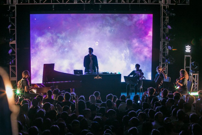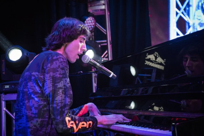 Ringleader A. G. Cook took the stage next, and he played a completely serviceable DJ set that kind of paled in comparison to the performances that bookended him. The set did contain one of the highlights of the night, however, when Cook stepped out from behind the DJ booth to take a seat in front of the piano that was set up on stage. And he delved into a quiet, tender, contemplative piano piece that was different from everything else that went on that night -- Cook's voice was still filtered through Autotune, though barely, but it was clear he was determined to show a different side to the whole PC Music thing, one that's more vulnerable and maybe more ripe for self-expression.