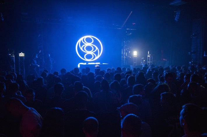After about an hour of milling around, sipping on drinks and waiting for the main show to start, a disembodied, mechanical voice came over the loudspeaker and instructed everyone to proceed into the theater. You could feel the room collectively hesitate, because we all thought the lobby would be where the main show was happening. But we all figured it out soon enough, and followed the throng into a dark room with a much more normal stage setup. The same POP CUBE logo loomed over all, bathing everyone in a warm, pulsating blue. And then it all began.