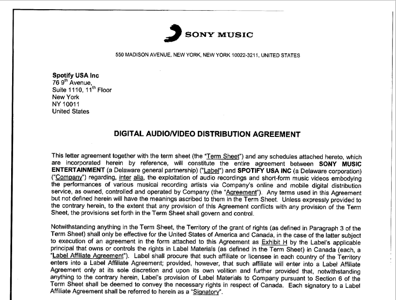 Furthermore, Sony has what's called a Most Favored Nation clause, which forces Spotify to match the best deal it cuts with any other label, ensuring Sony does not fall behind any label in royalty payouts. The Verge has a detailed graphical breakdown of how this all works.