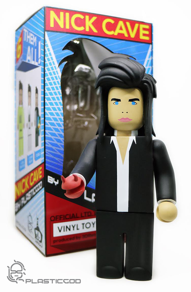 The LA-based pop artist Plasticgod designed a series of Nick Cave toys just in time for Comic Con. The figurines, which were modeled in Cave's likeness, are each named after a different song title and boast features that mimic its lyrical content, and one of the pair that represent "You Turn Me On" glows in the dark. The toys will debut at this year's Comic Con in San Diego and will cost $40 apiece. Only 200 of each toy will be made, and if you're eager to buy one, you can do so starting on 7/9 here. Check out each of the figurines below.