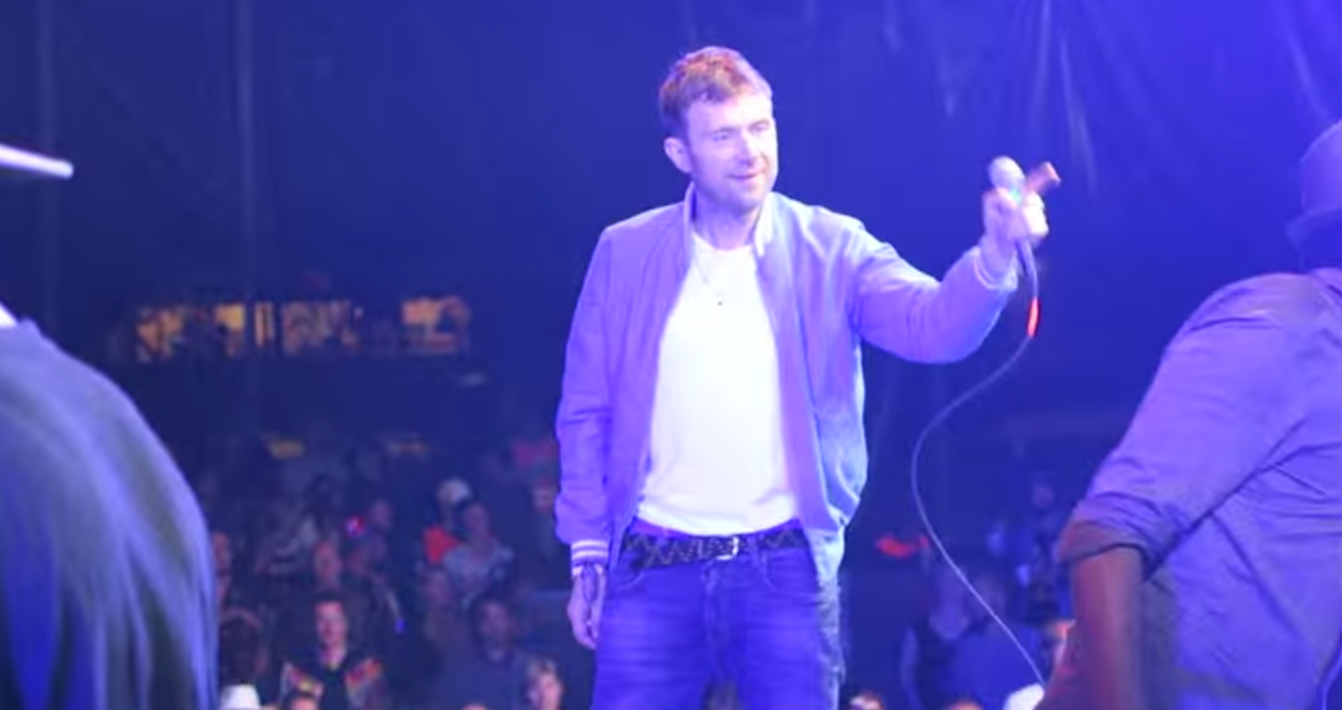 Denmark's Roskilde Festival ended this past weekend, and concertgoers who made it to the Africa Express supergroup set were treated with a very special performance by Damon Albarn. The Blur and Gorillaz frontman played a 5-hour set that came to an abrupt conclusion when a security officer told Albarn that his time was up. Albarn then asked the audience to continue cheering so his set could go on, before Africa Express stage manager Dave Prentice lifted him up and carried him off the stage. This all happened around 4AM, after Albarn performed a cover of the Clash's "Should I Stay Or Should I Go" and some of his own work alongside various other Africa Express collaborators, including Gorillaz' "Clint Eastwood." Below, watch videos from the performance and a clip of Albarn getting carried off-stage.