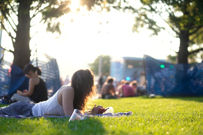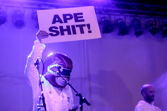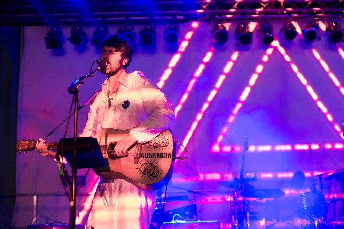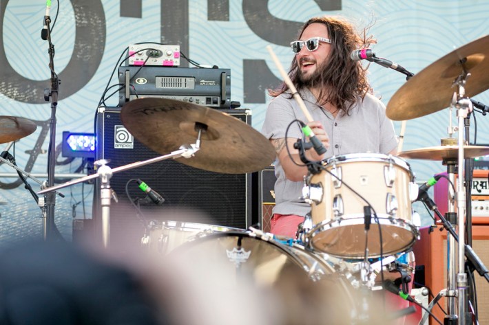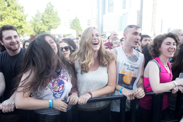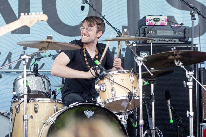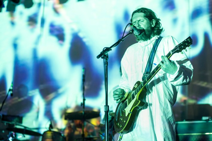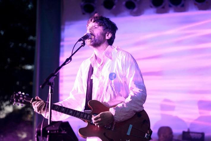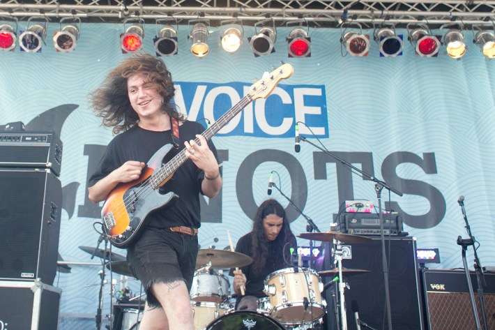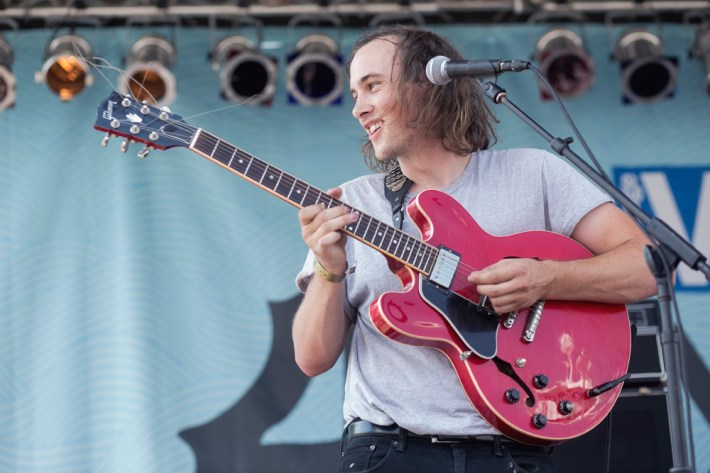 The Village Voice's annual midsummer 4Knots festival faced two logistical changes this year: a location switch-up and a transition from free to the modest general-admission fee of $25. This is the fifth year the festival has taken place, and in many ways, it'd outgrown both the free price tag and the Financial District South Street Seaport location that housed previous iterations. Neither of these new factors stopped New Yorkers from coming out to Saturday's lineup, which boasted plenty of grunge, surf, and psych rock acts like UK lush indie-rockers and Band To Watch Happyness, California garage rocker Mikal Cronin, and New Jersey punk trio Screaming Females. For most who attended, it seemed a little odd that Stephen Malkmus And The Jicks played the second-to-last set instead of headlining the event, but perhaps Super Furry Animals were accorded that honor since they hadn't played New York in six years. But by the time they took the stage in all-white jumpsuits, backed by an ever-evolving palette of psychedelic colors, plenty of other acts had broken in the small but eager crowd.