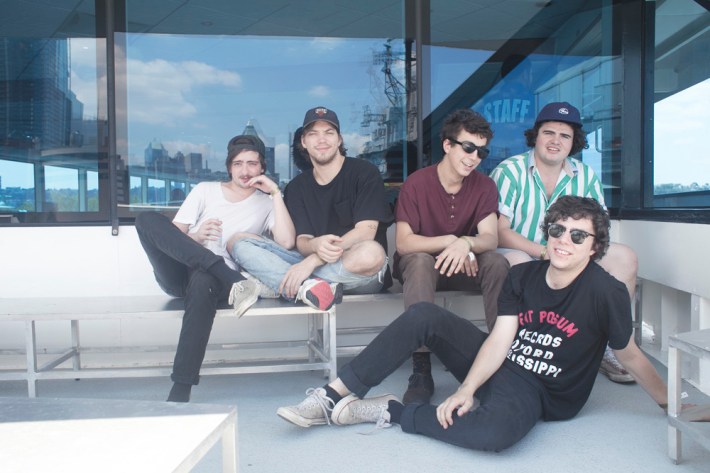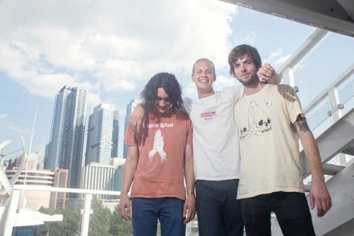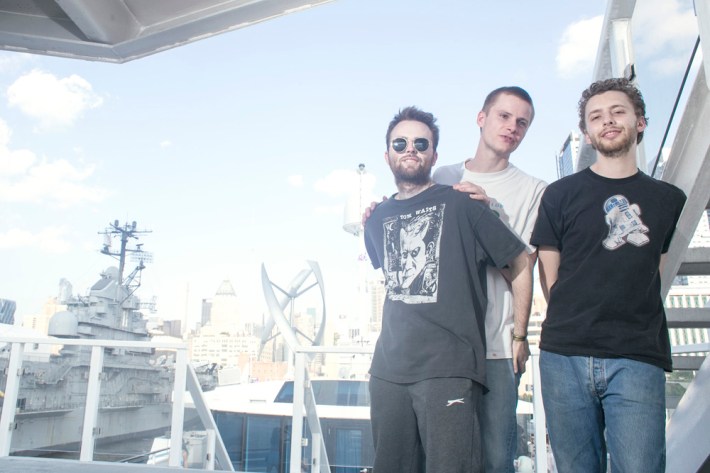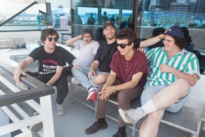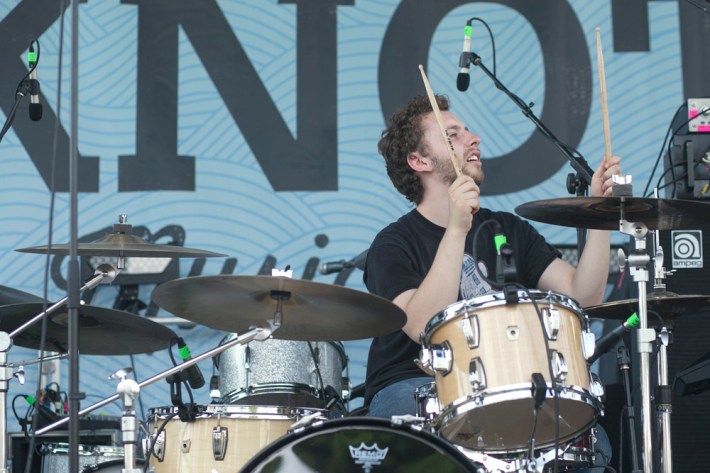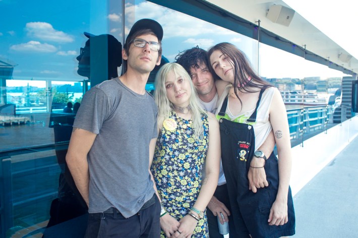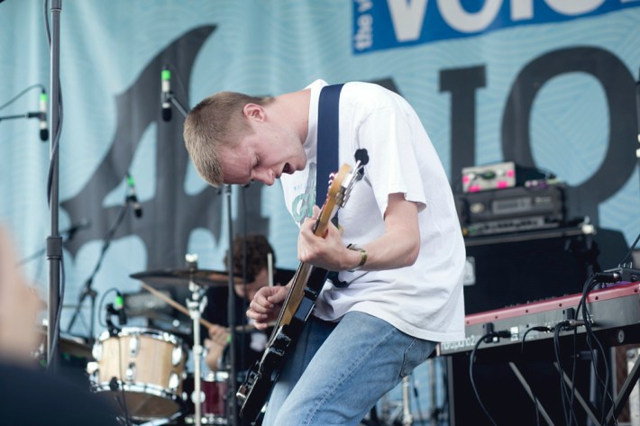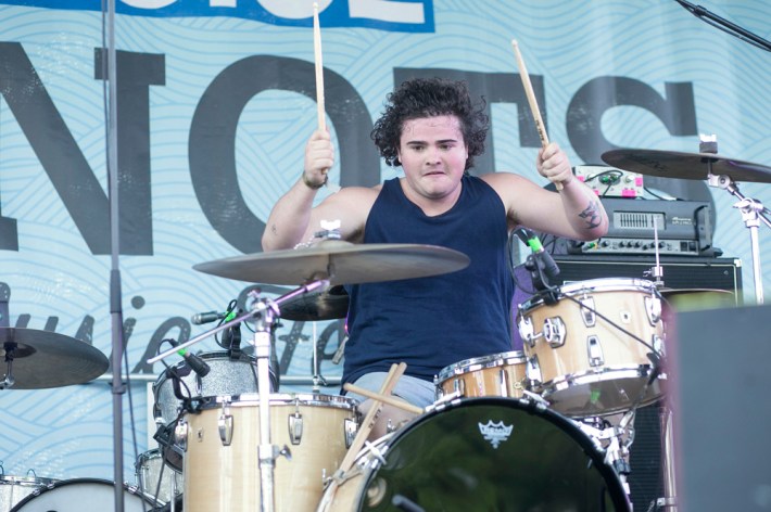 Surfbort, Heaven, Heaters, and Meatbodies (another Band To Watch) played during the early afternoon, and the most memorable event from those early sets actually came later in the day, when someone who was rumored to be in one of those acts jumped off the boat chartered to house media and VIPs during the show. Unfortunately for him, jumping off a chartered boat is a crime in New York (not to mention the Hudson is disgusting), and the perpetrator was banned from re-entry -- though he did try to sneak back in multiple times. I arrived at Pier 84 around 3 p.m. when Happyness took the stage, and was immediately impressed by their sharp, wistful melodies and cutting lyrics.