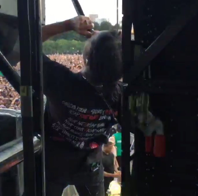 Playing "Jump Around" has long been the ultimate suck-up-to-the-crowd move for rappers at rock festivals; I once saw goddam Wyclef do it. Playing "Smells Like Teen Spirit" may have dethroned it now. But Rocky is, at the very least, a Nirvana fan; he once told The Sun, "Growing up, I was aware of Kurt Cobain and Nirvana's 'Smells Like Teen Spirit' and not just the usual stuff you’d expect growing up in Harlem. All that music shaped me."@g_eazy | @vicmensa 🔥🔥🔥 #lollapalooza #geazy #vicmensa #savemoney #Chicago