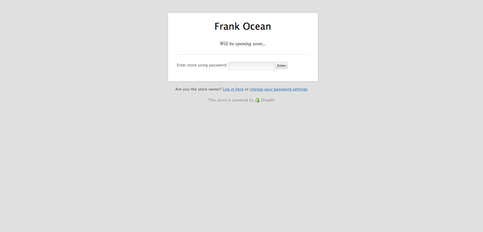 Earlier this morning we reported on Frank Ocean's brother trolling fans with a fake link for Ocean's new album, which is most likely called Boys Don't Cry. Now it looks like the record, which was originally tipped for July release, might really be imminent, and yes, Boys Don't Cry appears to be the title. A visit to frankocean.com will redirect you to boysdontcry.co, a Shopify web store with a Frank Ocean header. There's nothing there right now except a promise that it will be open soon and a prompt asking for a password. We're guessing pretty soon you'll be able to buy Ocean's album there in two versions. Get stoked!