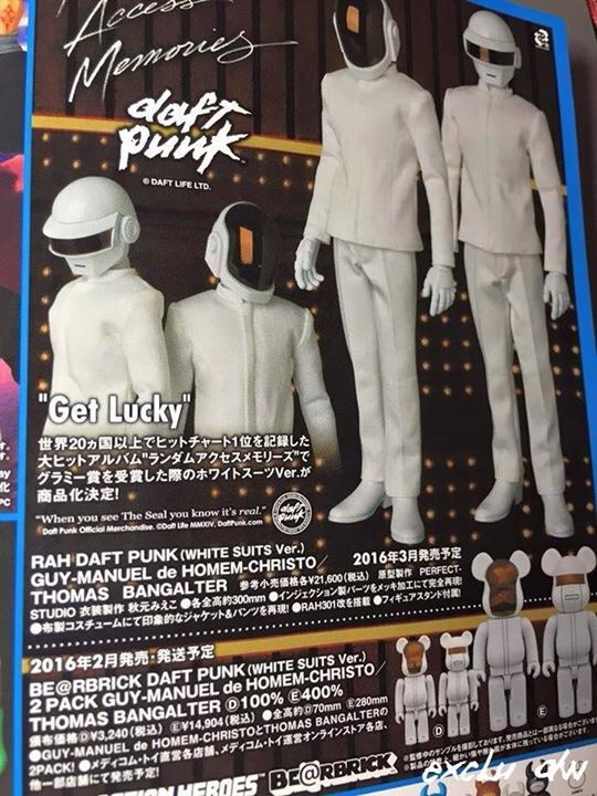 To that end, a new series of action figures based off their outfits at that award show are being created, and a bunch of photos have surfaced via Imgur/Reddit. This certainly isn't the first time that Daft Punk have collaborated to create a series of action figures, and according to a pre-order link for the white suit figures, they're going to expensive again -- 18,360 Japanese Yen is about $150. Check out more photos and a video displaying the figures below. The pre-order indicates they'll be available in March of next year.