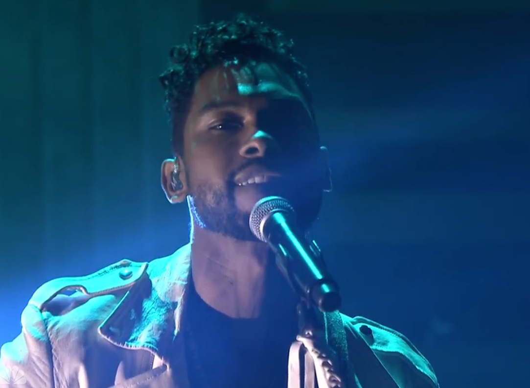 Last night, Miguel was the musical guest on The Tonight Show, and he showed the fuck up. He sang the low-key Girls soundtrack cut "Simplethings," which appeared as a bonus track on his excellent recent album Wildheart, and his take on the song was nicely understated. He never turned his voice all the way on or showed off his ridiculous dance moves, but there was a sweet confidence in his delivery; he knows what he'd doing. But what really put it over the top was the staging. Standing in plumes of dry ice and lit like an angel, he played an acoustic guitar, and his entire backing band was one guitarist and one guy playing a stand-up drum kit and an MPC. He just knows how to look like he's immortal; it's awesome. On the show, Miguel also took part in a game-show segment called "Long Story Short," in which he and Benicio Del Toro took on Jimmy Fallon and Jessica Alba and everyone did pretty badly. And Miguel also did an online-bonus video in which he talked about Boyz II Men's Motownphilly, the first album he ever owned. Watch all three videos below.