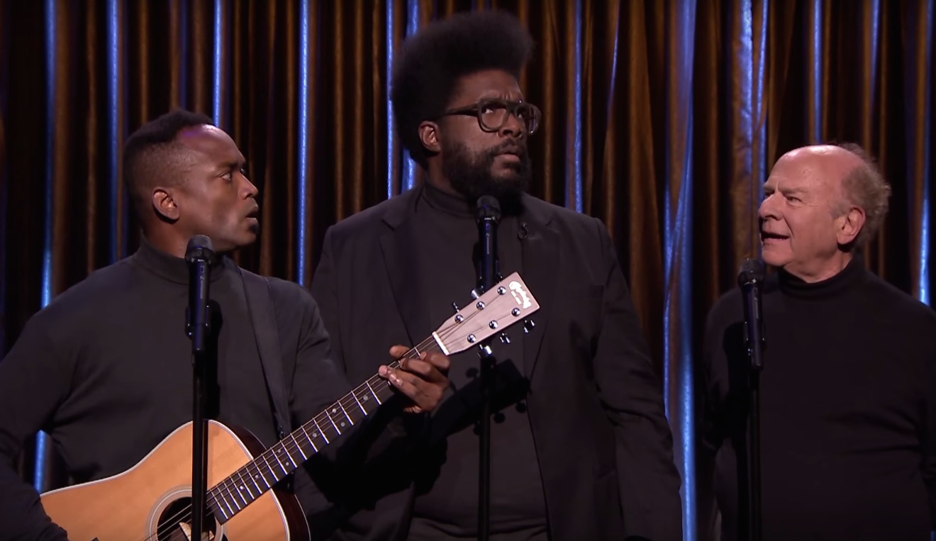 On The Tonight Show, the Roots members ?uestlove and Captain Kirk Douglas have a recurring bit called Black Simon & Garfunkel. They dress in mock turtlenecks like actual Simon & Garfunkel, they get that faraway look in their eyes, and they sing solemn, harmonized versions of current pop hits. They've done songs like "Shake It Off," "Timber," "Royals," and "Get Lucky." Last night, they took on the Weeknd's "Can't Feel My Face," probably the biggest song anyone came out with this summer. And midway through a special guest came out and joined them: The actual (white) Art Garfunkel, game enough to sing along with this goofy version of the Weeknd's song. Check it out below.