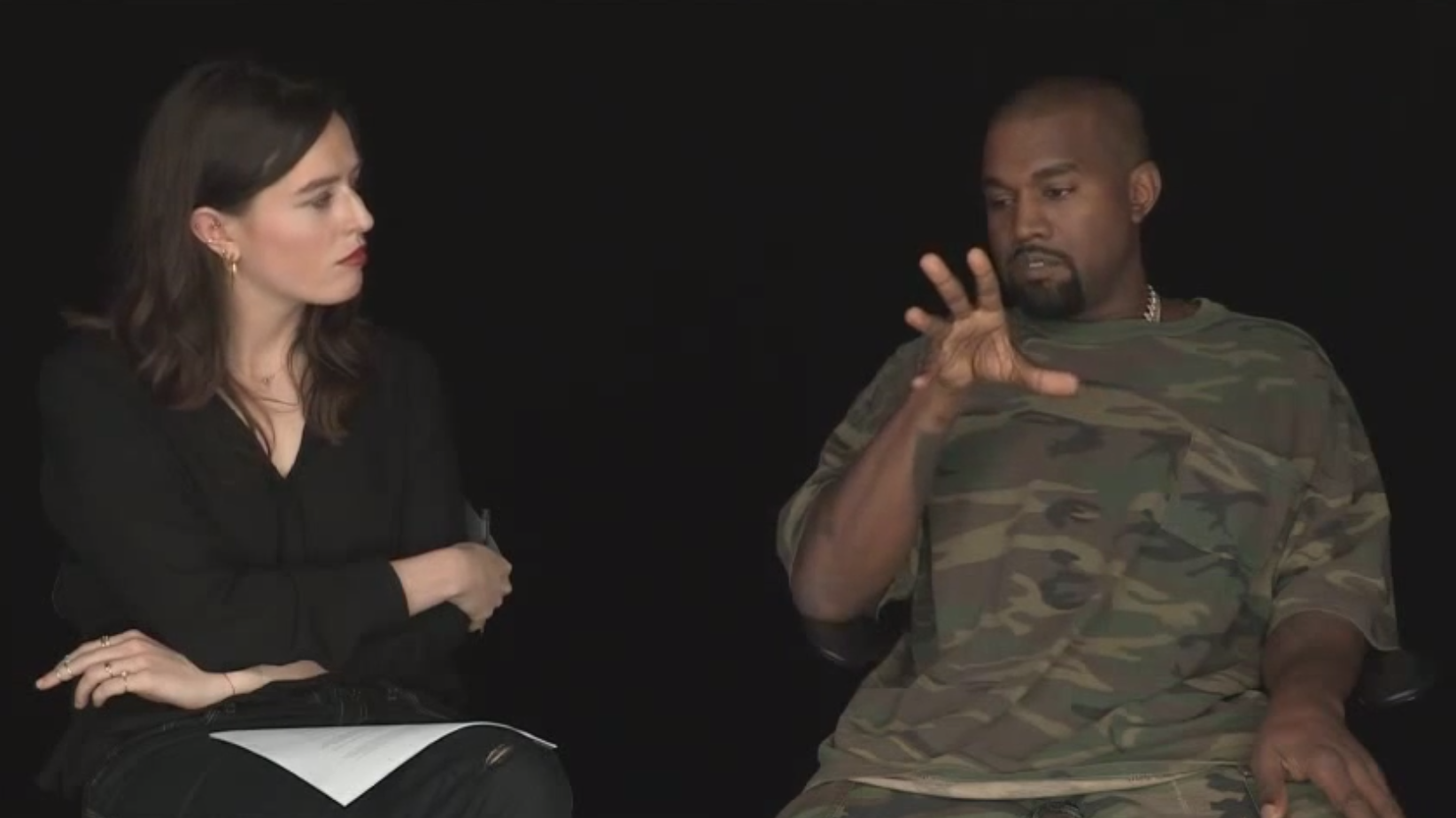 I'm not going to pretend like I've spent the past two hours watching this Kanye West interview, but I am also fairly certain a two-hour Kanye West interview would be entertaining, provocative, and likely quite insightful. The rapper, producer, and fashion designer sat down with Lou Stoppard for the latest installment of "In Camera," an interview series run by "Bound 2"/"Black Skinhead" director Nick Knight. Within the first few minutes he declares his greatest contribution to music is "synthesis," which seems about right. And as Vulture points out, at some point he says part of the reason SWISH has taken so long is because he doesn't want to release music that lacks purpose. Watch Kanye expound on those topics plus his presidential run, Caitlyn Jenner, and much, much more below.