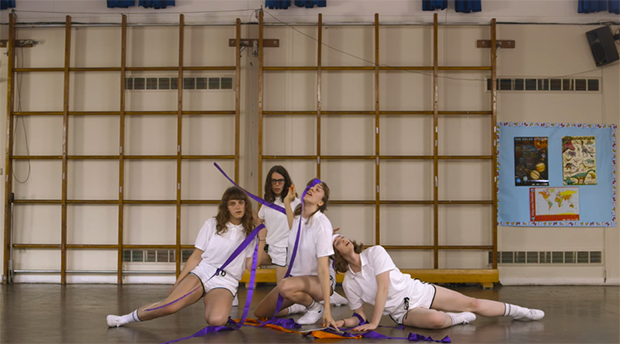 All-female garage bands are pretty much the greatest things ever, which makes London newcomers the Big Moon one of the greatest things ever by default. The four-piece thrives at blending indie rock and grunge stylings in a way that screams Sonic Youth, but with traces of Ex Hex or Hinds. Such is the case for the Big Moon's heartbreak-pop track "Nothing Without You" and its ridiculously fun accompanying video, directed by Louis Bhose. They break into some excellent synchronized choreography that's sort of an interpretive dance to the song itself, equal parts adorable and absurd. Streamers fly and headbands are adorned, and though the judges give the girls an average score of "1," we'll give them a "10" for effort. Maybe the Michael Cera in Juno-esque socks could be reconsidered, though. Watch the endearing video below.