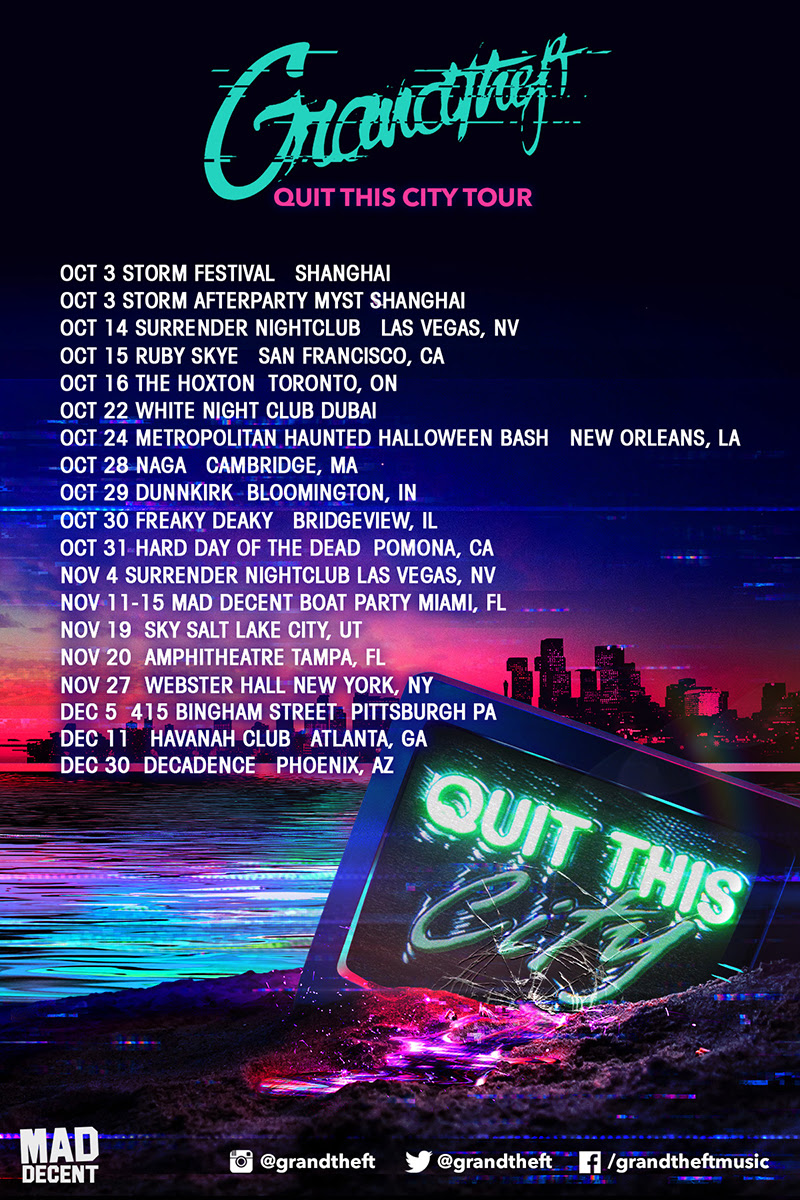Quit This City is out tomorrow, 10/30, on Mad Decent (Pirates Blend in Canada). Check out Grandtheft's tour dates below.