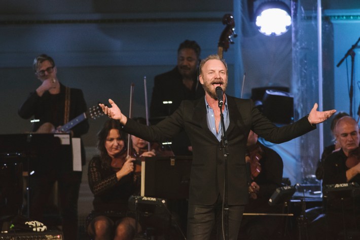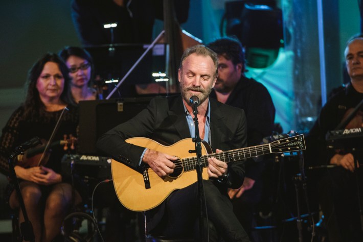 Sting, who I'm guessing has studied TM since birth, delivered a particularly satisfying performance by focusing on some less obvious singles from his solo catalog. This should have been a relief to NYC Sting fans who could only see him doing Geordie show tunes or lute covers in recent years. He played "Englishman In New York" and "Fragile" from 1987's …Nothing Like The Sun and "Shape Of My Heart" and "Fields Of Gold" from 1993's Ten Summoner's Tales. The classical guitarist Sharon Isbin, who plucked a jaw-dropping "Asturias" earlier in the evening, accompanied him on "Shape Of My Heart." She's been meditating since she was 17.