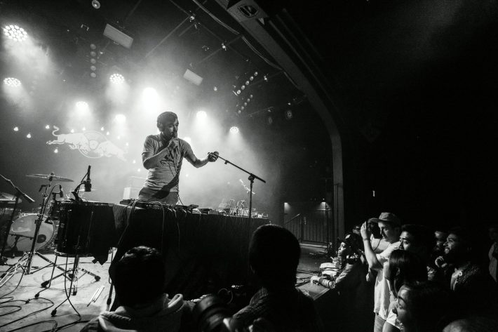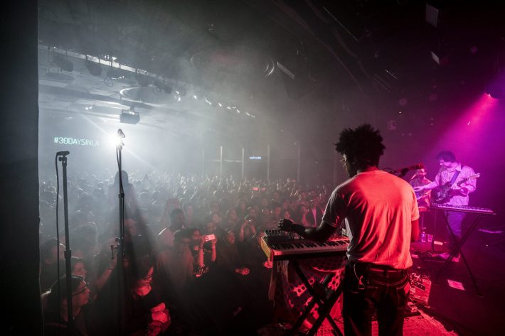 The sold-out night was part of 30 Days In LA, Red Bull's second annual month-long music festival taking place at venues around the city. When a doorman stopped me to inspect if I was wearing the night #9 wristband, he explained that some concertgoers held onto previous nights' bands because they were trying to collect all 30. That seems a little nuts to me, but if you're gonna see 30 shows in a month, you can do worse than a roster that includes Grimes, TV On The Radio, Vince Staples, and Tinashe. These shows also give out free snacks to early arrivers, plus door prizes like posters and pins, and post-show bags of chocolate chip cookies. I left with a Toro Y Moi prayer candle, which I will use to pray for more cookies.