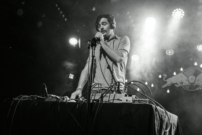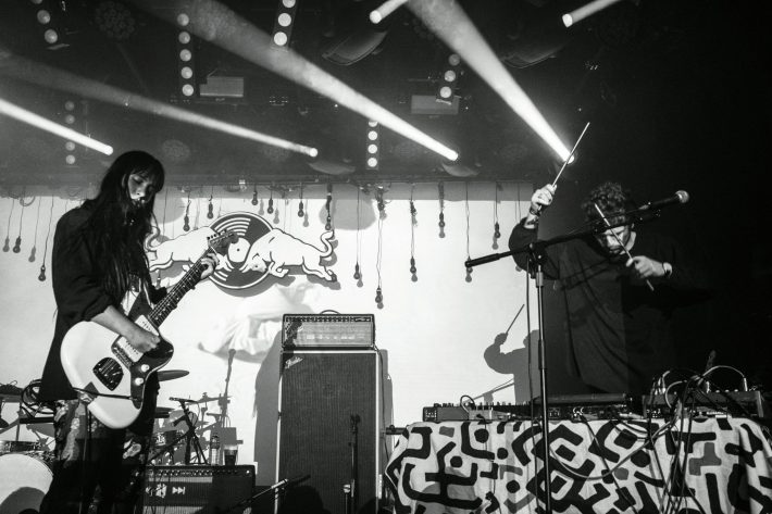 Sometimes the lineup pairings for these Red Bull Sound Select shows are curious (I once saw Ryley Walker open for Beach Slang), but the Austin artist Bayonne was fitting support. He was until very recently performing under his real name Roger Sellers … so recently that the festival was still using that on its signage. But in introducing his self-described "strange music … loopy kind of shit," the electronic composer said this would probably be his last show billed as Roger Sellers. Convulsing and twirling behind a table of carefully arranged equipment, Bayonne overlapped manipulated piano samples and nature sounds with looped live drumming and vocals. It made for some surprisingly exhilarating and cinematic one-man IDM, with elements of post-rock and folktronica. His album Primitives will be re-released under his new moniker on Mom+Pop next year. Brooklyn's gothic R&B duo Young Magic rounded out the bill with cuts from last year's Breathing Statues.