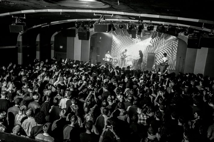 On the second-to-last night of their US tour, Toro Y Moi's band took the stage to William DeVaughn's "Be Thankful For What You Got" before launching into "Half Dome" and "Buffalo," a pair of taut jams from their latest album What For?. Chaz Bundick has said the latter track pulled him out of a writer's block and set the tone for the collection. It's hard to imagine Bundick with writer's block, though. Since we met him on Myspace in 2009, the South Carolina multi-instrumentalist has shared five disparate studio albums (one as his dance alter-ego Les Sins) and a couple of experimental mixtapes, along with various indie rock remixes and celebrated rap track features. Those project-to-project aesthetic changeups weren't as noticeable inside downtown LA's newish Teragram Ballroom last night. Alternating between synth and guitar from his stage-left perch, Bundick led a career-spanning set that made room for Elephant 6-style indie-pop ("Run Baby Run") and dancefloor-friendly psych ("Say That") alongside longtime fan favorites like "New Beat." The soupy arrangements mean Toro’s live sound has more in common with say, Tame Impala, than the other retro fetishists of the pre-SoundCloud music web.