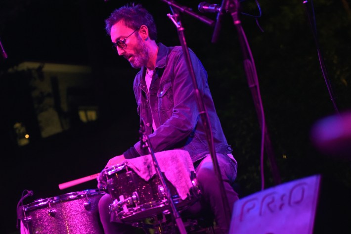 In general, Bryan's side projects happen without much of a plan, rooted more in curiosity or random exploration. Working in a home studio he's putting together in his house in Cincinnati, he's been revisiting solo material dubbed Shit Attack. The most interesting stuff, by his estimation, is 13 or 14 years old. There's a cover of Fleetwood Mac's "Dreams." He plays just about everything, aside from a guitar part from Aaron on one song; he sings, too, borrowing unused lyrics from Berninger. ("Unauthorized -- the cease-and-desist is in the mail," Berninger quips when he overhears us discussing it.) "It's messy," Bryan says, describing Shit Attack. "It's charming in that way." The project may never see an official release, but he also has Pfarmers, a group that features Danny Seim from Menomena, and trombonist Dave Nelson, who's toured with the National as well. While he asserts that Seim does "most of the heavy lifting" in actually putting Pfarmers' material together, it's also been a place for Bryan to try out ideas that don't really fit into the framework of the National's music -- namely, wonky synth-based sonics with his drums that can hint at industrial. As it goes with Bryan's other projects, Pfarmers is a casual, laid-back thing without much of a plan; even so, they have a follow-up to this year's debut already finished and slated for release next year.