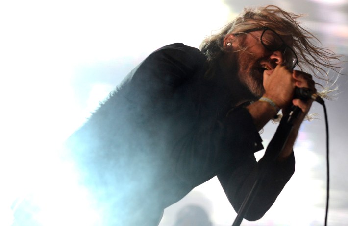 In what seems like a quiet hour, loose activity fills the lives of the National's five members. It's that period of time before the band takes the stage; last-minute decisions and logistics are being hammered out, but it's also kind of boring and filled with a lot of pacing around and small talk. Frontman Matt Berninger is supposed to write the lyrics to "Sorrow" on a skateboard for the Tony Hawk Foundation's Boards + Bands Auction and, despite having once performed the song for six hours straight, he can't quite remember the next line. Drummer Bryan Devendorf, seated nearby in-between smoke breaks -- American Spirits, the yellow pack -- tries to help him out. Guitarist Aaron Dessner is working on tonight's setlist. His brother, Bryce (also guitar), mills around outside, hanging with Sufjan Stevens, then Justin Vernon, then Spoon frontman Britt Daniel. Bassist Scott Devendorf has to choose their walk-on song; he's feeling something by the Doors, but it's too sunny for their usual "Riders On The Storm" so he goes with "L.A. Woman."