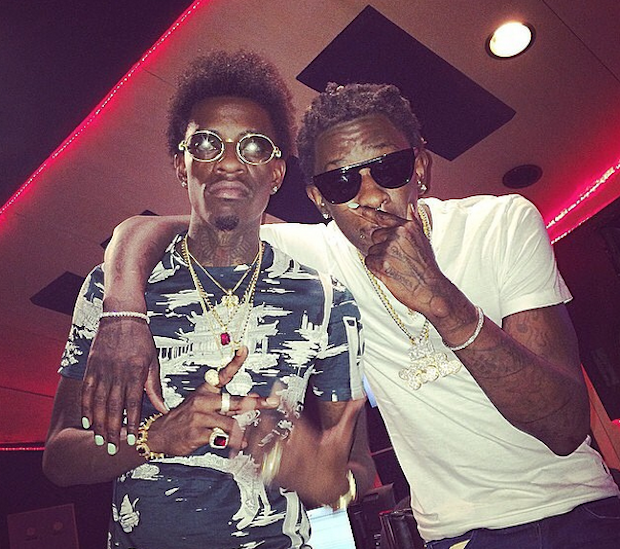 They're back! Maybe! Hopefully! Last year, Young Thug and Rich Homie Quan joined forces to release the hit single "Lifestyle" and the excellent collaborative mixtape Rich Gang: Tha Tour Part 1, which conclusively proved that these two are better together than they are on their own. That mixtape was the best thing that either one of them has ever done, so it sucked to watch them drift apart and say sideways things about each other in interviews. But as Miss Info points out, a couple of new Thug/Rich Homie tracks have surfaced online. These things are mysterious, so we don't know if they're actually new or if they're left over from some old, forgotten recording sessions. But the two songs, "Dead On" and "Contemplate," are so urgent and energetic that I'm just going to pretend they're signs that a new mixtape will come out any minute. Listen to both of them below.
