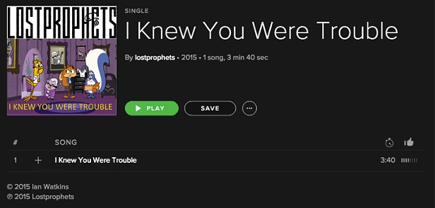 The cover art pictured above is a mash-up of Lostprophets' logo and a screengrab from the Canadian cartoon Scaredy Squirrel (lol). After The Guardian asked Spotify about the apparent mix-up, the track was removed and a representative told the publication the following: