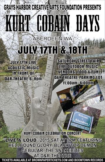 Kurt Cobain Days was a new festival this year, held in Cobain's hometown of Aberdeen, WA. The whole premise is straightforward enough: Get a handful of (mostly) Washington artists together to pay tribute to their state's musical patron saint. The whole vibe sounds like it was small-town and local -- more of a street fair than a festival, per se. Generally speaking, such things make me uneasy and/or suspicious. The over-exaltation of the artists who died too soon or the further reification of their myths and legacies is mostly a recipe for cloying repetitions of the same rock history documentary sound clips of how massively important these people were. (Like, the cycles that lead to people looking at you like you have something knocked loose in your head if you suggest that maybe, just maybe, Cobain's legacy has been a bit overblown.) Maybe that's a little cynical -- we have days or festivals marking or honoring all sorts of people, and Kurt Cobain Days was probably a good show of local pride.