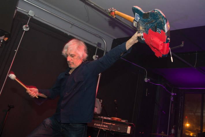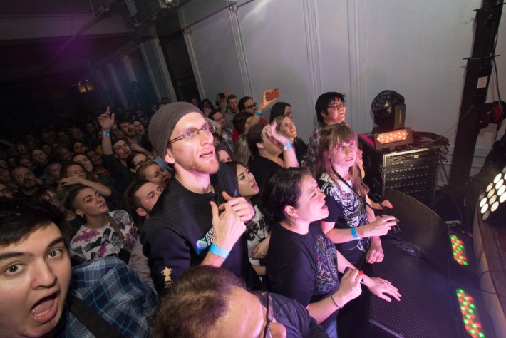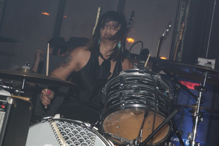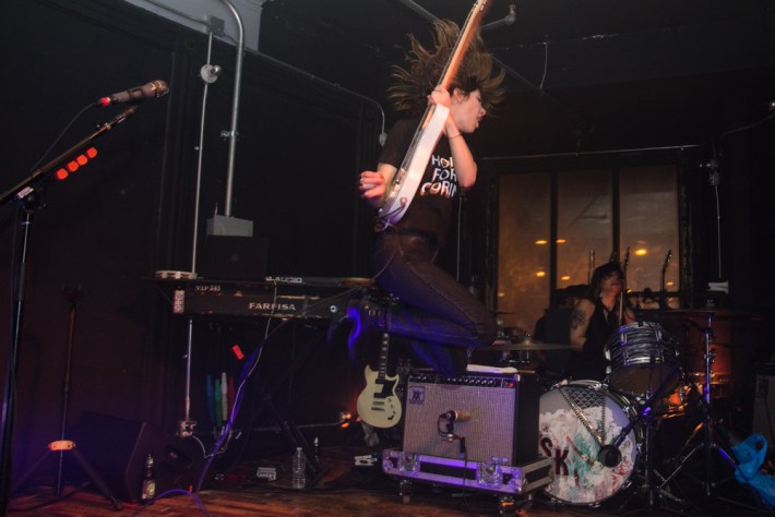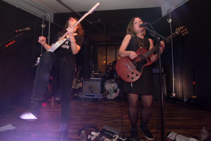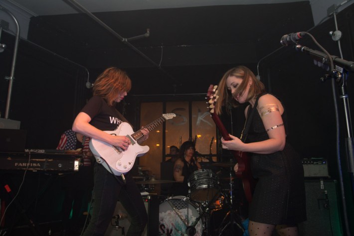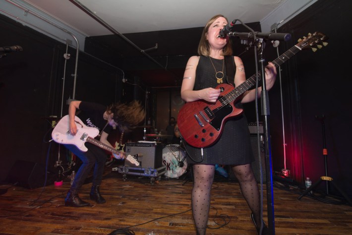 If you live in NYC and didn't see Sleater-Kinney this week, you fucked up! The reunited Olympia punk trio gave you five chances at five different venues, and closed out their triumphant 2015 in the smallest room they've played in a long, long time. Last night's concert served as the soft reopening of Brooklyn's beloved DIY venue Market Hotel, which was closed by cops in 2010. Thanks to the tenacity of local promoter Todd P, the Bushwick space now boasts a temporary liquor license, some much-needed ventilation, and a neat window behind the stage through which the crowd can watch the M train pass behind the band. Ticketless fans had lingered on Myrtle Ave in the rain all day, some with desperate cardboard signs, even though the show was clearly 200% sold-out.