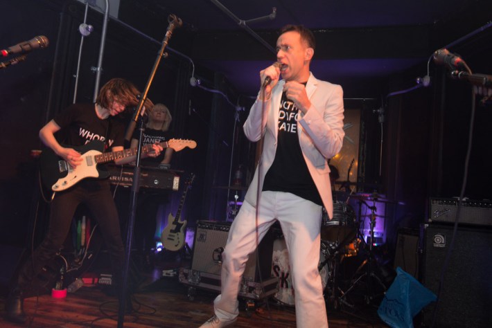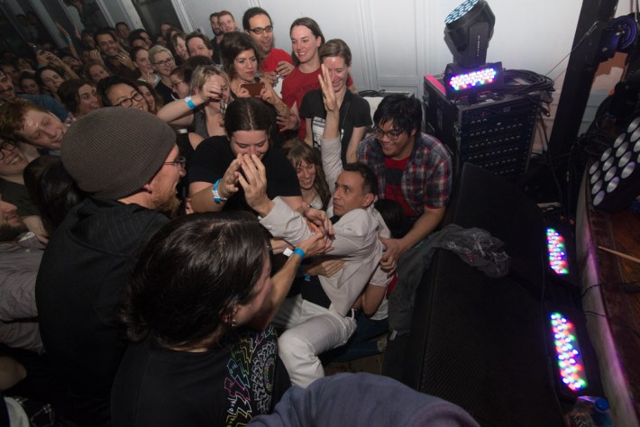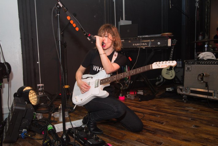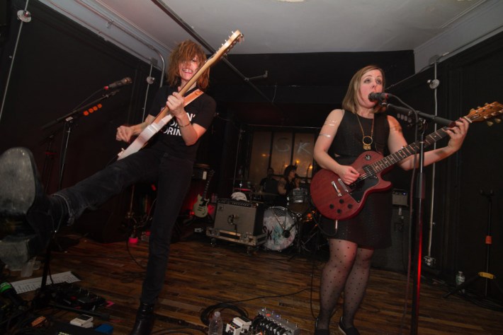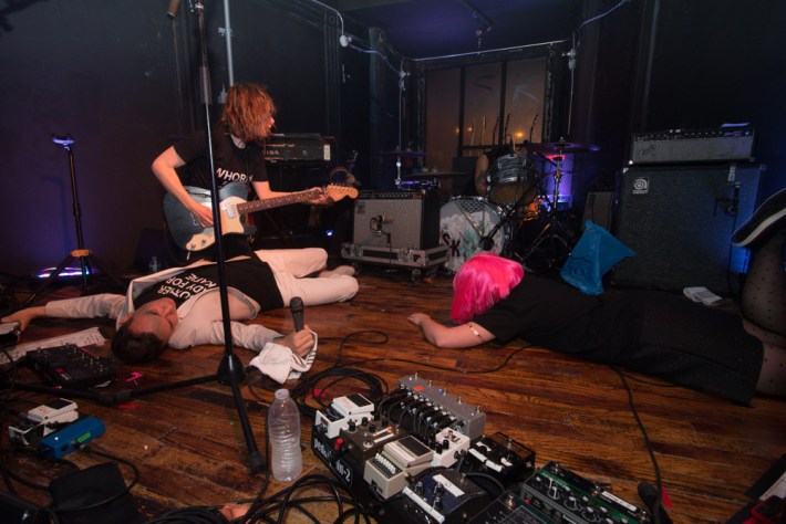 After Lee Ranaldo primed early arrivers with 40 minutes of feedback, Corin Tucker, Carrie Brownstein, Janet Weiss, and touring guitarist Katie Harkin locked in with a floor-shaking set that included half of No Cities To Love, their first album in a decade and one of the best of the year from anyone. Brownstein (who can currently be seen in comedy series Portlandia and Transparent, Todd Haynes' dramatic Oscar contender Carol, Old Navy's holiday commercials, and book stores selling her acclaimed new memoir) nodded to her less ubiquitous but no less ferocious musical partner with a homemade "WHORIN' FOR CORIN" t-shirt. Naturally drummer Weiss had already been repped by fans because she's Janet fucking Weiss.