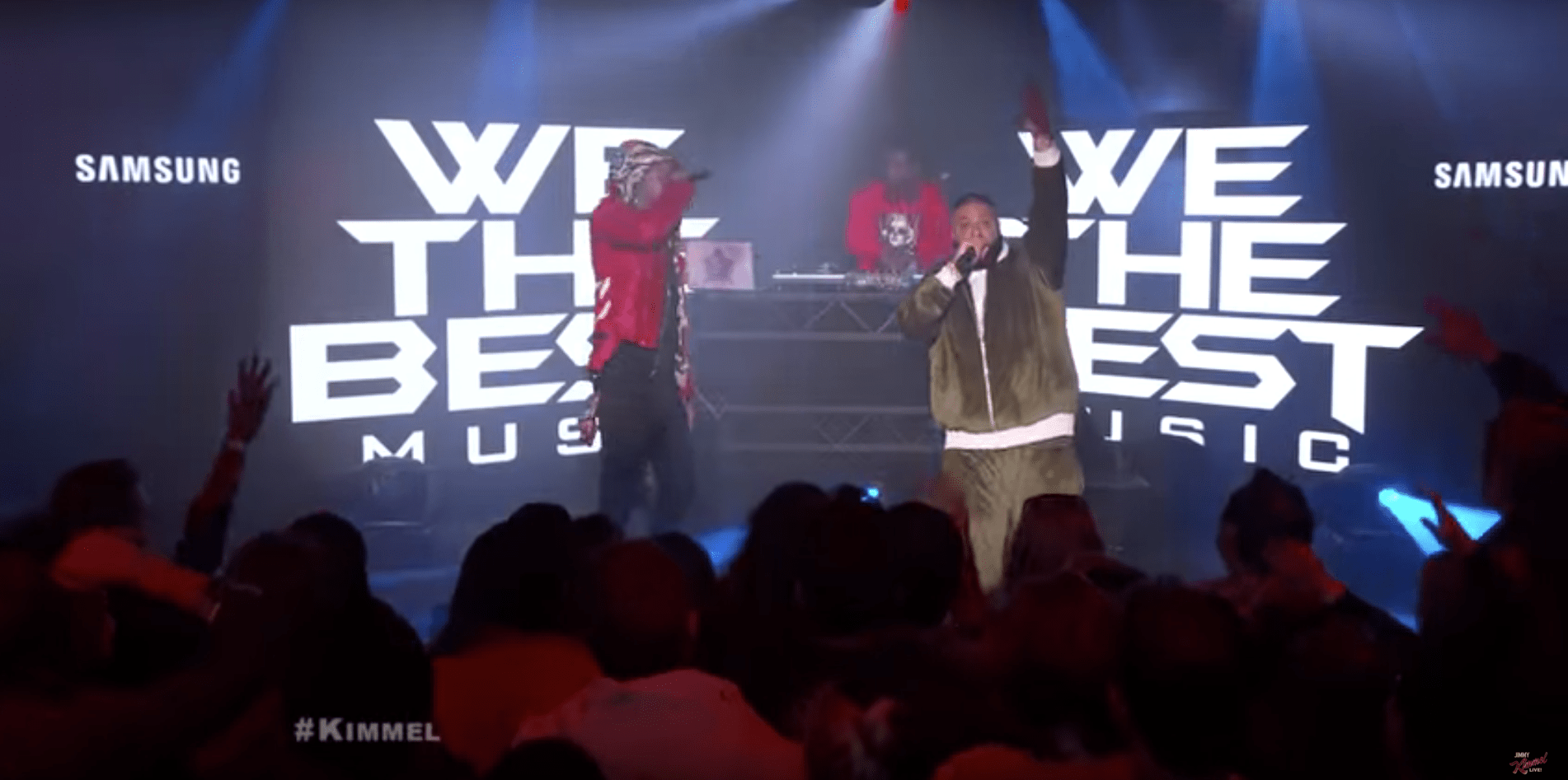 DJ Khaled performed presided over a medley on Jimmy Kimmel Live last night. The set began with a snippet from "All I Do Is Win" off of his 2010 album Victory, then Future showed up to do "I Don't Play About My Paper" and "You Mine" from Khaled's recent I Changed A Lot. They also did "Jumpman," which has nothing to do with Khaled, because why not?