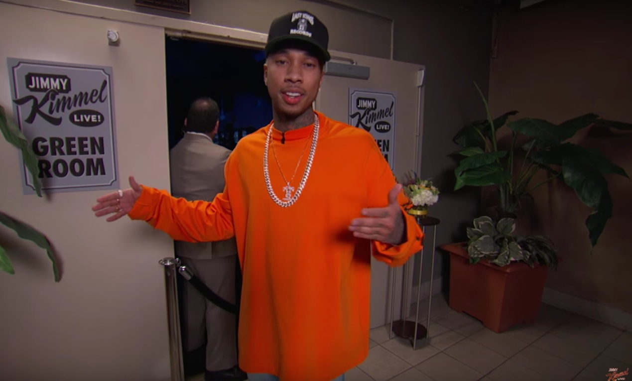 After Monday night's Grammy Awards, for some as-yet-unexplained reason, Paul McCartney, Beck, and Taylor Hawkins all tried to get into a post-Grammy party being thrown by Tyga. They were all turned away at the door. TMZ posted video of the three of them being unable to get in, and it became a whole story. On his show last night, Jimmy Kimmel gave Tyga a chance to explain what the hell happened. He blamed the disrespect on the fire marshall -- "Tweet the fire marshall, don't tweet me." He also said said that it wasn't really his party; he was just getting paid to perform. And he said that if he'd known that McCartney was out there, he would've gone outside with the microphone and brought McCartney up to perform with him, which is a pretty funny image. Sadly, the world will never get to hear McCartney's luminous backing harmonies over "Rack City." Watch the Kimmel bit below.