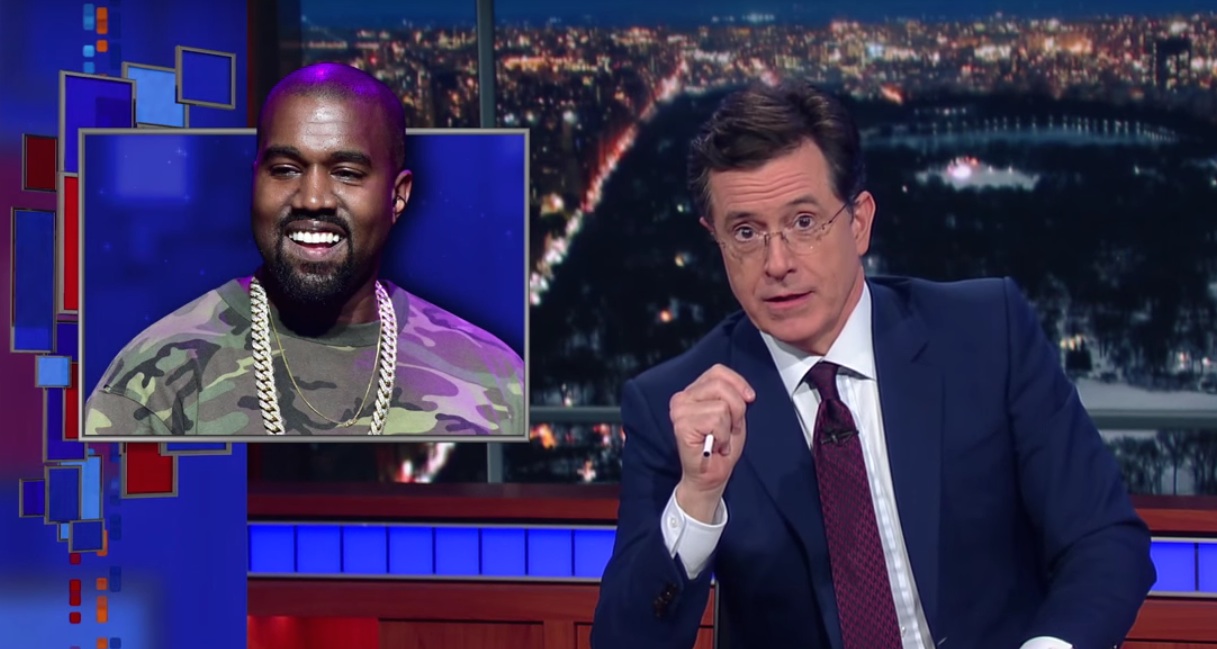 Of the many, many puzzling things that Kanye West has said and done in the past few weeks, perhaps the most puzzling has been the announcement that he has $53 million in personal debut, followed by the campaign to get Mark Zuckerberg to give him a billion dollars. This sort of thing should be a godsend to every late-night host, but as far as I know, the only one who's really bitten is Stephen Colbert. Colbert had fun going in on West on last night's episode of the Late Show. Best line: "He shall overcome. After all, I believe it was Martin Luther King who said, 'Please give me $53 million.'" Watch the bit below.