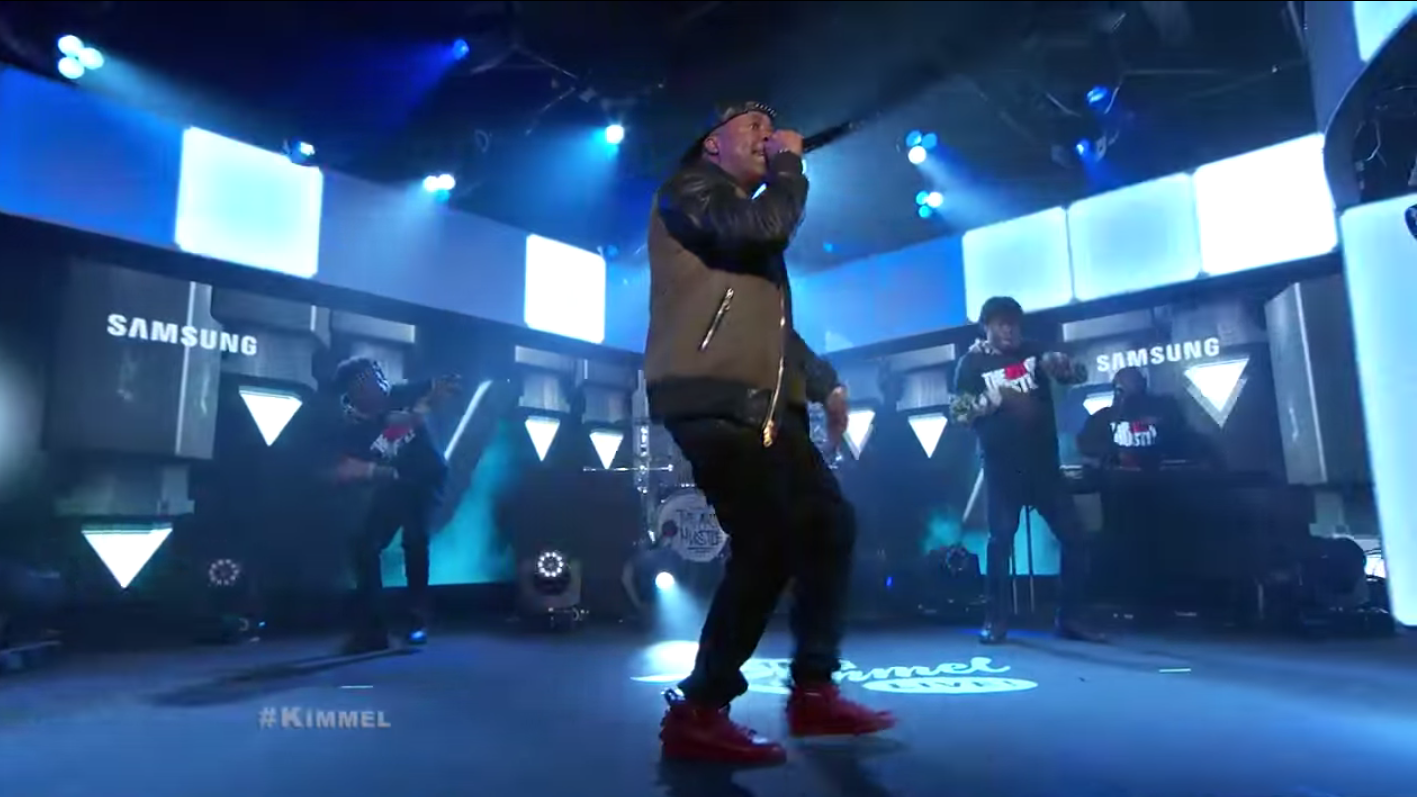 "Down In The DM" is becoming for Yo Gotti what "Bands A Make Her Dance" was for his fellow Memphis street-rap veteran Juicy J, a breakout hit that lifts a consistently enjoyable cult favorite to a new level of fame. Last night Gotti brought the social media sex anthem to Kimmel, where he was backed up by Travis Barker on drums for some reason in addition to two dancers and a DJ. Check it out below.