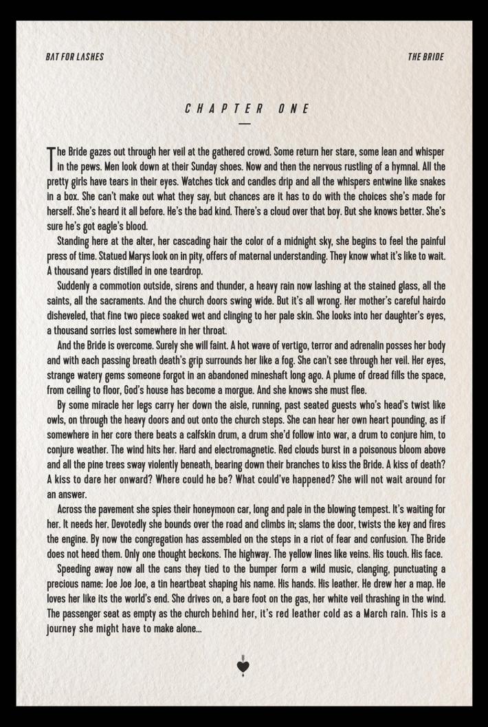 Written as the soundtrack for a feature length film in mind, The Bride follows the story of a woman whose fiancé has been killed in a crash on the way to the church for their wedding. She flees the scene to take the honeymoon trip alone, resulting in a dark meditation on love, loss, grief, and celebration. See the full narrative which inspired the album below: