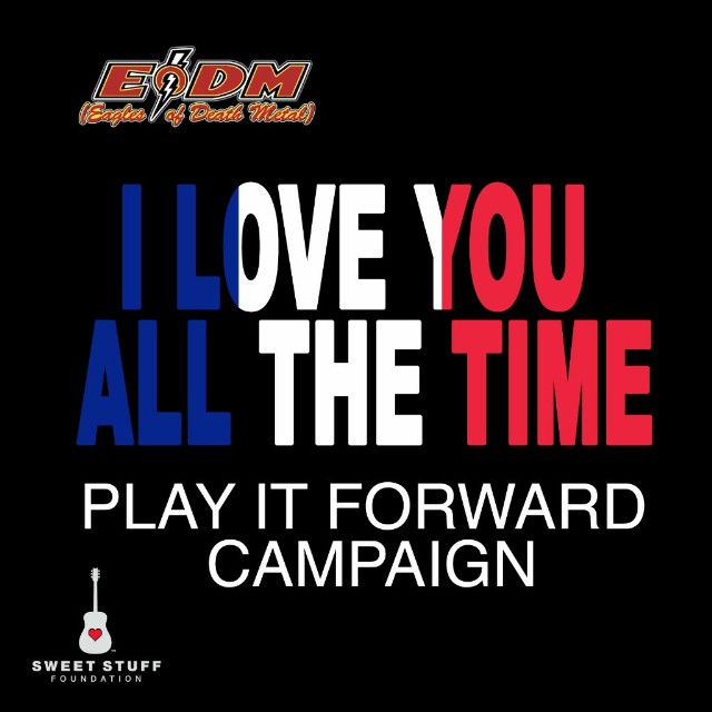 Eagles Of Death Metal are still going with their "I Love You All The Time" campaign, in which various different artists are covering their song, and proceeds are going to the Sweet Stuff Foundation. Elton John recently covered the song, as did hair metal greats Faster Pussycat. And now Strokes members Fabrizio Moretti and Nick Valensi have done a version of the song, and they've recruited Beck to help out. Their version of the song is a slick, cosmopolitan one, and it's partially sung in French. Listen to it below.