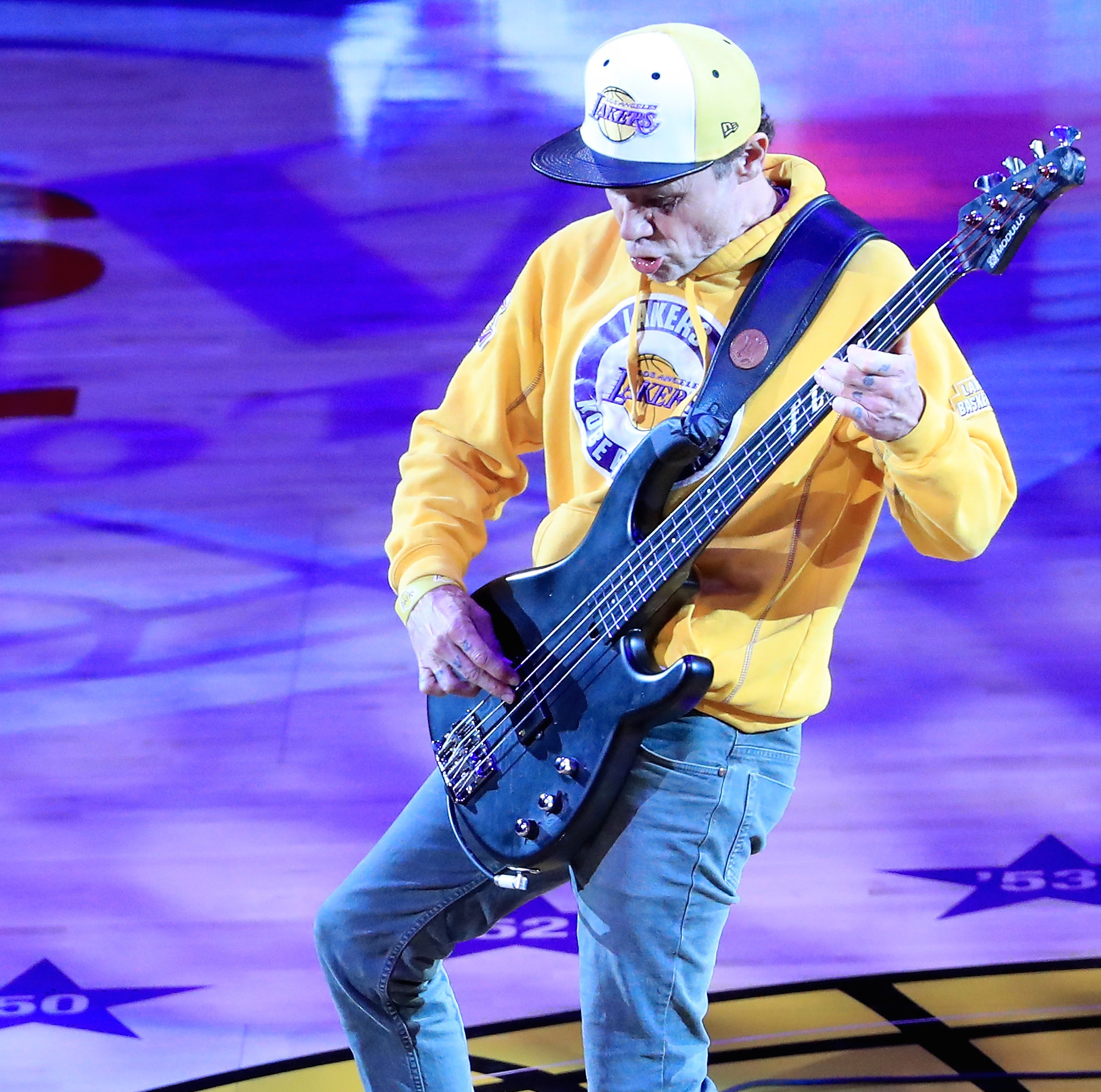 Last night, Kobe Bryant ended a 20-year, five-championship NBA career by somehow scoring 60 points in the Los Angeles Lakers' 101-96 victory against the Utah Jazz. (The Jazz evidently did not play a whole lot of defense.) That's an iconic ending to an iconic run, and the Lakers found a memorable way to send him out. For the game's performance of the National Anthem, they brought in Red Hot Chili Pepper and Atom For Peace Flea to play a Hendrixian all-bass instrumental version of "The Star-Spangled Banner." I'm not sure, but this may be the most Los Angeles thing that's ever happened. And Kobe almost made it to the end of the song. Watch the weird, impressive performance below.
