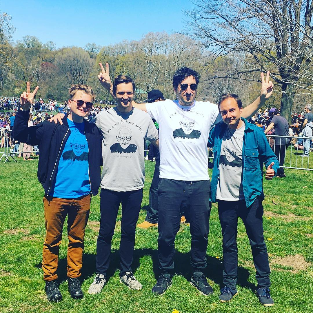 The New York primary is coming up on Tuesday, and Bernie Sanders has been busy this week. The fact that indie musicians love Bernie has been well-documented on this site in recent months, and the Democratic candidate has been enlisting some high-profile bands to help New Yorkers feel the Bern. Vampire Weekend (plus Dirty Projectors' Dave Longstreth) gave their first live performance in a couple of years at a rally in Manhattan's Washington Square Park on Wednesday, and today, Grizzly Bear did the same, coming out of their hibernation -- because bears, get it? -- to play a Bernie event in Brooklyn's Prospect Park. In advance of their imminent recording of LP5, Ed Droste and co. played a very brief set that included Veckatimest highlights "Two Weeks" and "While You Wait For The Others" and Yellow House's "Knife," which you can watch below. (Note they changed the lyrics in "Knife" to "Can't you feel the Bern"). TV On The Radio are performing at another rally on Monday, which you can RSVP to here.