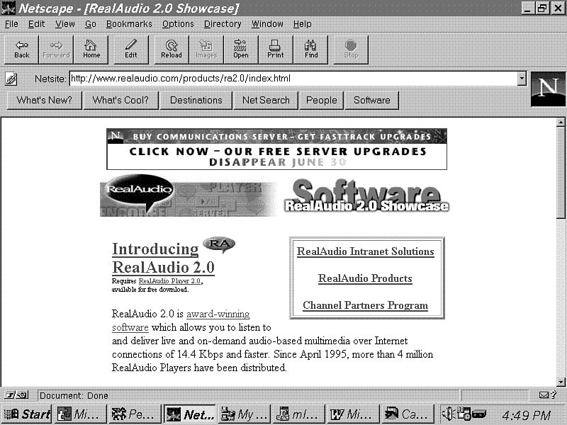 Streaming audio… on the internet? RealAudio made that possible, or at least that's the format that gets the credit; Progessive Networks launched the first version of the audio-streaming technology in April '95 after the multicast backbone known as the M-bone proved the viability of live internet broadcasting. Less than a year and a half later, RealAudio 3.0 debuted with an audio quality comparable to Stereo FM over 28.8 kbps modems -- and if having that touted as a spectacular breakthrough didn't sound 1996 enough to you, keep in mind that A&M Records marked the occasion by using the service to broadcast the debut of Sheryl Crow's single "Hard To Make A Stand". (Crow's official statement on the event: "RealAudio 3.0 rocks!") For the next several years, RealAudio held a presence as a sort of by-default format for the next few years, but media-streaming inroads by a competitor in Microsoft's NetShow -- later Windows Media -- took a decent-sized chunk out of their dominance, and the bursting of the dot-com bubble finished what a receding demand for ephemeral livestreaming audio started. RealNetworks made a point of suing Microsoft with an antitrust lawsuit based around Windows bundling Windows Media Player with the OS. But even after receiving a nearly half-billion-dollar settlement in the case, RealNetworks never quite regained that same level of prominence in a media landscape now dominated by Spotify, Pandora, and Apple. And within 10 years of Sheryl Crow's endorsement, RealPlayer had earned a rep as a complete privacy-violating nuisance of a software package, to the point that PCWorld ranked it second only to America Online as one of the worst tech products of all time.