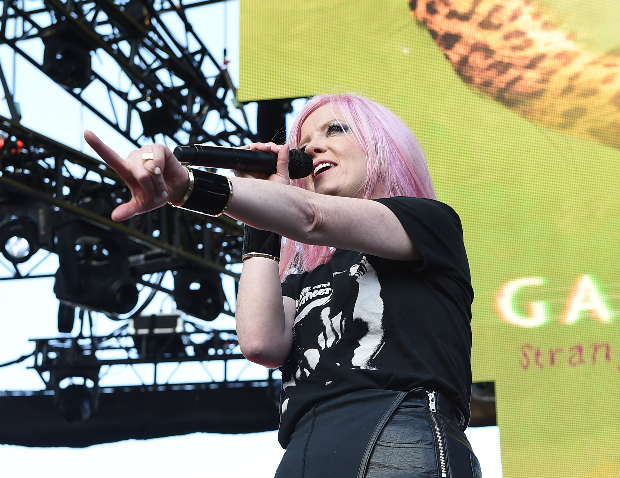 Yesterday's KROQ Weenie Roast in Los Angeles was a particularly eventful one. During '90s alt-pop veterans Garbage's set, while they were playing "Special," frontwoman Shirley Manson ended up stumbling off the stage and into the audience. Fortunately, she recovered amazingly well, playing it off and continuing to perform the song in the middle of the crowd: