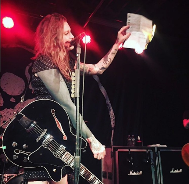 It seems that just about nobody in music is behind North Carolina's House Bill 2, the discriminatory bathroom bill that forces trans people to use the bathrooms corresponding to the genders listen on their birth certificates. And people in music are finding different ways to protest it, whether it be canceling shows or issuing statements. But rather than canceling her planned show in Durham, Against Me! frontwoman Laura Jane Grace, who is trans, recently said that she's play the show as "a form of protest." She wasn't kidding. Last night, the band started their show with Laura Jane Grace burning her birth certificate.