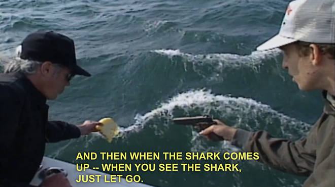 In the pilot episode of the short-lived TV show Fishing With John, John Lurie drives with this former boss, the film director Jim Jarmusch, from New York City to Montauk with the intention of catching a shark. Neither of the men are trained to wrangle sharks ("We'll come back with one arm each!" Jarmusch quips on the way there), but they make the attempt anyhow. The two lack a fisherman's patience, and get antsy after waiting for their prey. So, they try a new approach that involves Jarmusch holding a piece of cheese as bait, while Lurie leans over the side of the boat, handgun at the ready. As Jarmusch dangles the cheese over the edge, Lurie leads them in a rendition of the Jaws theme song. The shark never arrives.