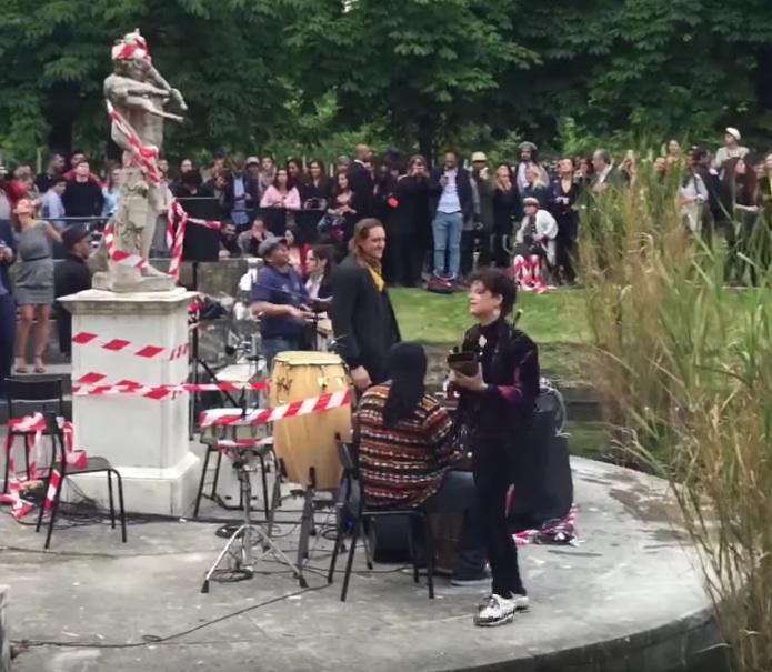 Yesterday, the street artist JR opened a show at the Louvre, which, as I understand it, is a pretty famous museum in Paris. (Sadly, this JR is not JR Smith; I would absolutely pay for a transcontinental flight if that guy had a Louvre show.) And as part of the opening festivities, he brought in Win Butler and Régine Chassagne, the couple who lead Arcade Fire, to do a surprise DJ set. From what we can see on video, that set involved live percussionists, David Bowie's "Oh! You Pretty Things," and Sinéad O'Connor's "Nothing Compares 2 U," as well as Butler covering Son House's “Grinnin’ In Your Face," performing a rendition of Neon Bible's "My Body Is A Cage," and as Arcade Fire Tube points out, what might be a brand-new song. Watch several fan-made videos below.