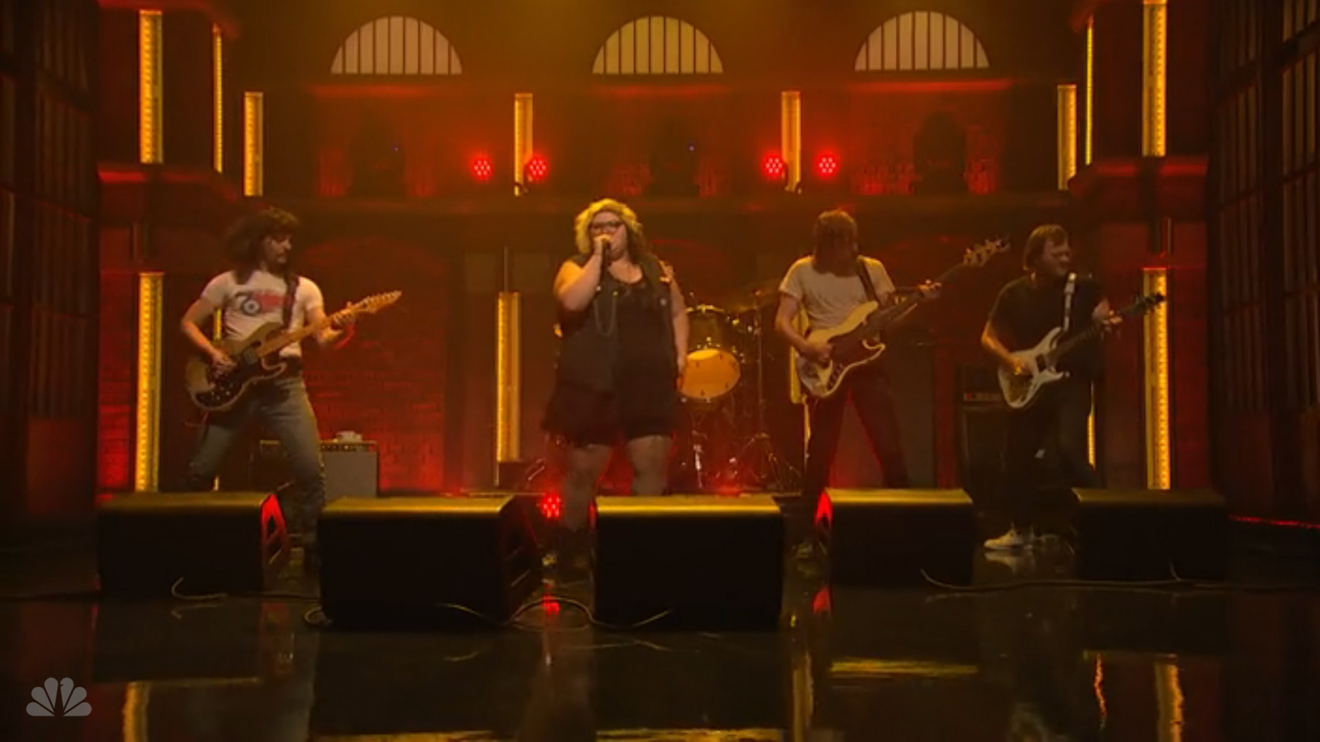 DIY classic rockers Sheer Mag made their television debut last night on Late Night With Seth Meyers. The quintet shared a pleasant surprise in the III EP in March, and here they ripped through standout track "Nobody's Baby." Philly bands seem to have a simple, but infectious mentality of just getting on stage and rocking as hard as they possibly can. Sheer Mag brought that to the Late Night stage, and it made for one hell of a performance, with three purely shredding guitars and Tina Halladay's guttural tone in command. Watch.