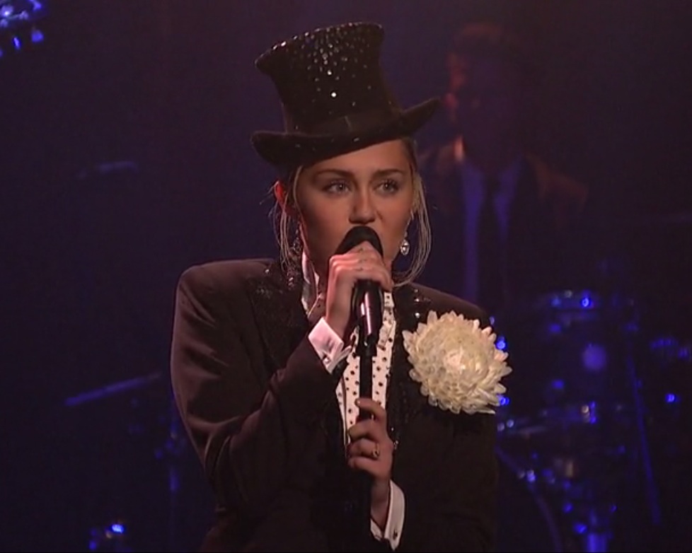 Last night, NBC aired the first episode of Maya And Marty, the new variety show from Saturday Night Live veterans Maya Rudolph and Martin Short. (Jack White did the theme music.) And as part of the opening-night festivities, SNL ally and mildly transgressive pop star Miley Cyrus appeared to do some light gender-bending. Cyrus started her performance wearing a tuxedo and top hat, singing Leonard Cohen's 1988 casanova classic "I'm Your Man." She then ripped off her tearaway pants and launched into Peggy Lee's eternally saucy "I'm A Woman," with Rudolph joining her. It's a delightfully old-school TV performance, and you can watch it below.