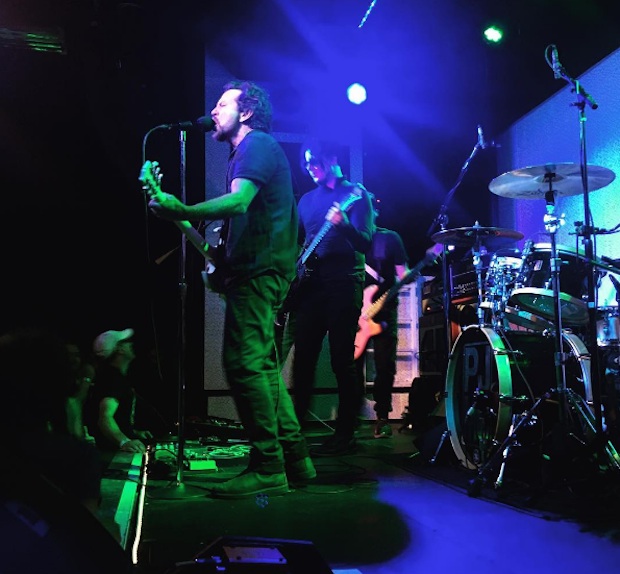 Tomorrow night, Pearl Jam will headline a night of Tennessee's massive Bonnaroo Festival. But before playing that show, they played a very different sort of show last night. The band made a visit to Jack White's Third Man headquarters in Nashville, playing a short secret show at White's Blue Room and recording the whole thing direct-to-acetate. And as part of the band's eight-song set, White himself joined in on guitar for one song, helping out on the non-album track "Of The Earth." No video of the performance has materialized online yet, but you can see some Instagrams from the show below, via Pitchfork.