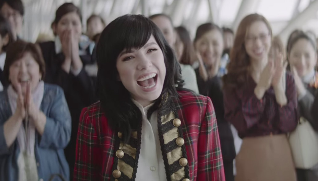 Yes, Jepsen has joined the ranks of North American celebrities who star in foreign TV ads, lending her song and herself to a new promo for shampoo company Moist Diane. Setting aside the brand name, which feels a little, um, Lost In Translation, the storyline is cute enough. Jepsen grabs a morose bus passenger at the airport and leads her racing through the airport toward a romantic moment of truth, all while some kind of flash mob breaks out. Watch below.