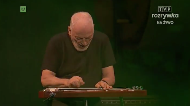 Pink Floyd's David Gilmour started the latest leg of his Rattle That Lock Tour a few nights ago in Poland. The setlist remained largely unchanged from his run of shows earlier this year with one notable exception: He played "One Of These Days," the opening track from Pink Floyd's 1971 album Meddle, which he's never played solo and was last played by the band during their final tour in 1994. The show was broadcast on Polish television, and footage of him performing "One Of These Days" can be watched via Jambase below.